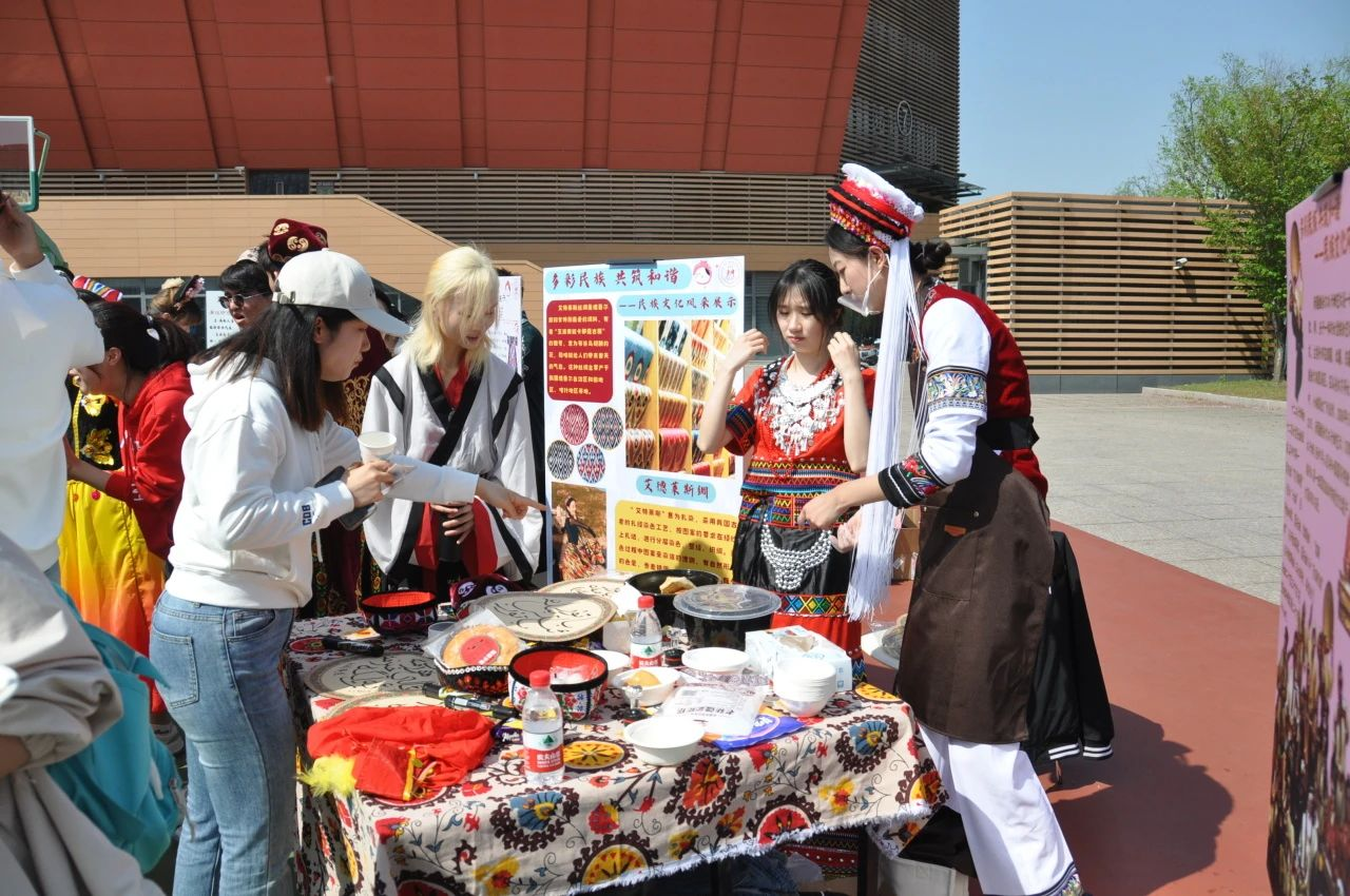 不仅如此,本次校园文化节还特设了以“多彩民族 共筑和谐”为主题的民族文化风采展示点位。在这里,同学们可以感受到到多个民族的独特文化魅力,品尝各民族特色美食、观赏精彩的才艺表演、体验民族特色服饰及饰品,感受多民族的文化魅力。这一活动不仅增进了各民族感情,加强了校园内文化的交往交流交融,也为师生们提供了了解各民族文化的机会,共同构建和谐的校园文化氛围。