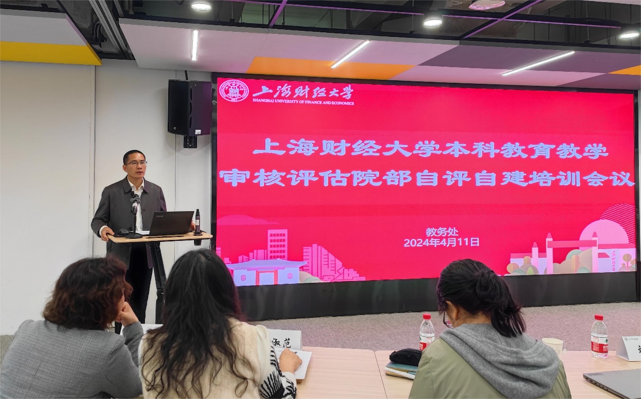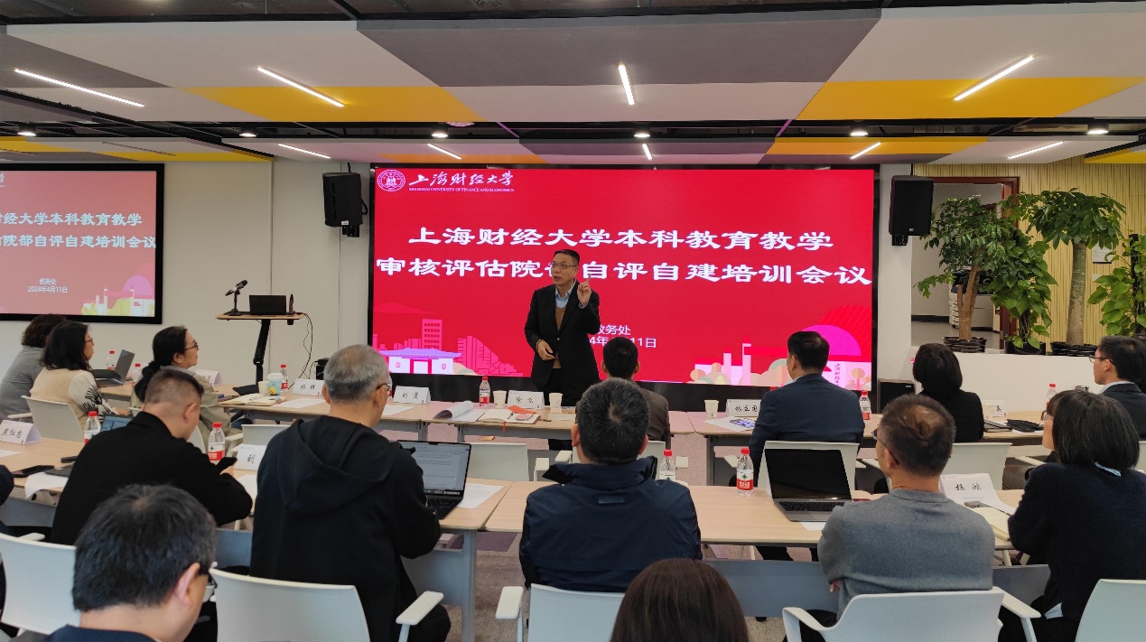 为全面把握新一轮审核评估的要求与内涵,2024年4月11日上午,学校组织召开了上海财经大学本科教育教学审核评估院部自评自建培训会。会议邀请华东理工大学助理研究员刘蓬就学院如何在本科教育教学审核评估的迎评促建中做好相关工作进行专题辅导。