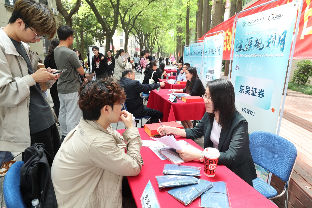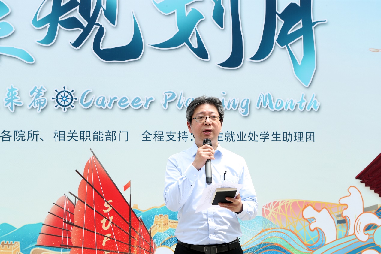 四月深涧底,桃花方欲然。4月16日,我校第十六届生涯规划月校企交流会和启动仪式暨公开咨询日分别在学生中心二楼会议室、绿叶步行街顺利举行。活动邀请到久事集团、上海交易集团、工商银行上海分行、华为财经、上汽集团、东吴证券、远景能源、新东方前途出国等人力资源部门资深经理,共同为进一步提升高校毕业生充分就业和更高质量的就业建言献策。校党委副书记朱鸣雄老师参与启动仪式并致辞。党委常委、宣传部部长曹东勃,党委学生工作部/研究生工作部部长、团委书记沈亦骏,学生工作处处长倪志兴,校招生就业处和部分院、系、所分管招生就业工作的领导和老师共同参与本次活动。