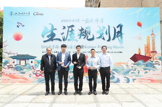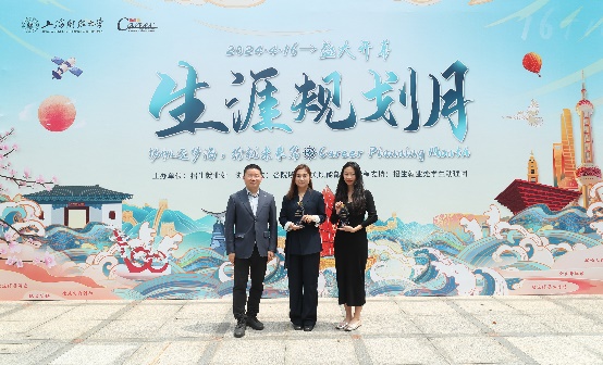 仪式现场,校领导、政府主管部门和校内职能部门负责人还向企业嘉宾颁发“生涯规划月优秀导师”奖杯,在sufe“扬帆号”前定格美好瞬间。