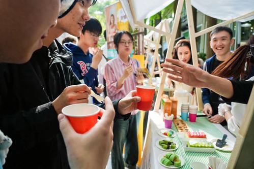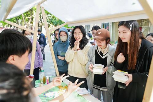 在随后进行的美食嘉年华上,英式查佛、蒙古的奶制品、印度尼西亚的香蕉椰奶甜汤、荷兰的苹果派、巴西的瓜拉纳……不同国家的美食荟萃,让上财师生不出校园便进行了一场环游世界的美食之旅。同时,加拿大桌面冰球、韩国的掷柶、缅甸毽球等不同国家的特色游戏也同步进行,展现世界各地的不同风采。