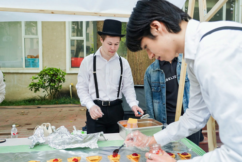 为加强中外学生劳动教育,今年的美食嘉年华展台首次由中外学生共同搭建完成,进一步通过活动加深交流,促进融合,生动诠释了和谐国际校园的理念。“从开始的笨拙到后来的熟能生巧,从最初的沉默寡言到之后的一拍即合,在共同的目标下,我们用汗水、默契和欢笑浇灌了国际友谊之花。”美食嘉年华负责人、来自马来西亚的陈颉如是说。