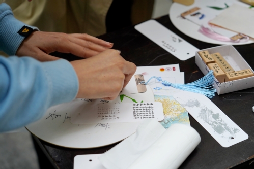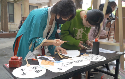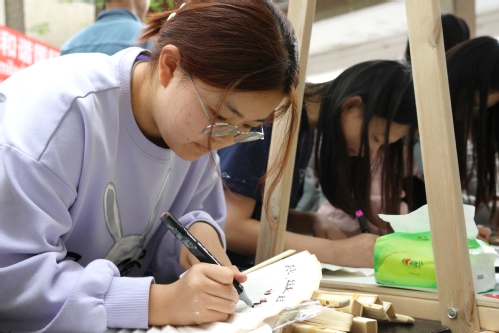 方寸之间,笔墨流转,霖泉书画社吸引众多同学写下诗词禀赋,以手挥毫,以心入画,在书写中道出自己的经典体悟。同学们在DIY协会“古风诗韵寓书签”创作体验中,以书签为载体,借古风之韵,倾注奇思妙想,收获快乐和技能。在扇面书画摊位,学子们共绘文化画卷,古风韵味跃然扇面之上。执笔之间,花鸟虫鱼、山川云月皆跃然灵动,无一不展现财大学子的文化意趣。