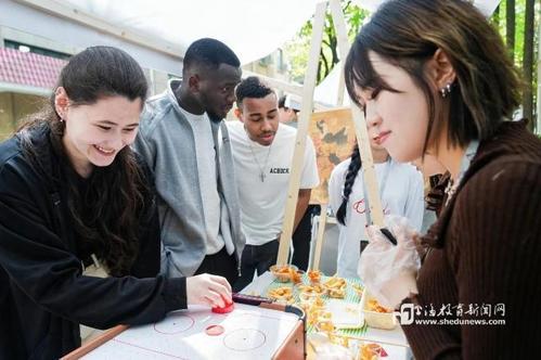 本网讯 (记者 程媛媛)英式查佛、印度尼西亚的香蕉椰奶甜汤、荷兰的苹果派、加拿大桌面冰球、缅甸毽球……不同国家的美食荟萃和特色游戏,让上财师生不出校园便进行了一场环游世界的美食之旅,同时体验到世界各地的不同风采。