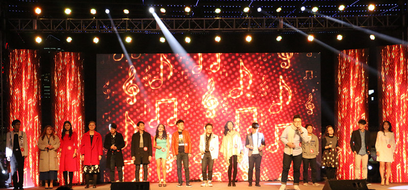 尽管寒风阵阵,但悠扬的歌声吸引着人们从不同的路赶来,汇集在五角场广场。本次决赛共分为“乐动”、“声动”、“心动”三个篇章,分别对应决赛的各个环节。决赛正式开始前,一首《我们的歌》打破了夜幕的寂静与寒冷,所有参赛选手同台演唱瞬间引燃了现场观众心中的火种,火光映在每个人眼中,随着音符一起跳动。