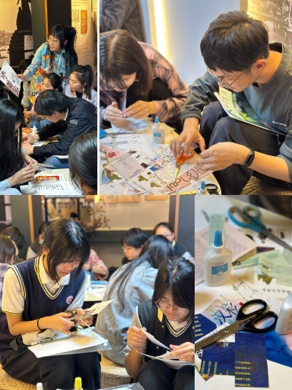 此次体验工坊,也是控江中学文创导航课高中生们的一次博物馆实践课。同学们在博物馆中跟随育衡宣讲队队员的引导参观了商学博物馆,了解文物的故事,与上财学子一起创作拼贴诗,用画面中的文字元素表达对生活中美的独特感受。控江中学高二年级的贺同学说:“在大学博物馆里,和哥哥姐姐们安静地一起完成作品,这样的体验很新奇。既收获了春天的诗意,也留下了美好的回忆。”