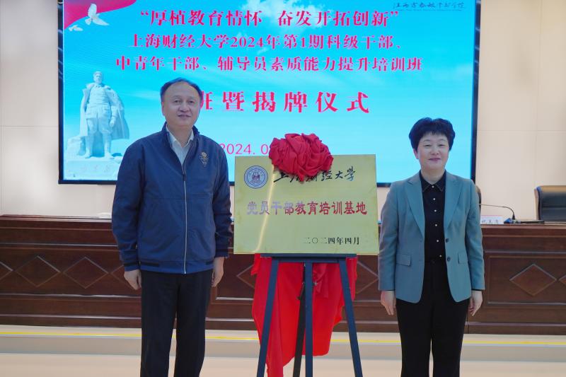4月26日上午,培训班开班式暨揭牌仪式在江西方志敏干部学院举行。上海财经大学党委书记许涛,上饶市副市长祝美清致辞并共同为“上海财经大学党员干部教育培训班基地”揭牌。弋阳县委书记、江西方志敏干部学院第一副院长吴华,上海财经大学党校副校长、组织部副部长王峰出席开班式。江西方志敏干部学院第一副院长张船东主持。