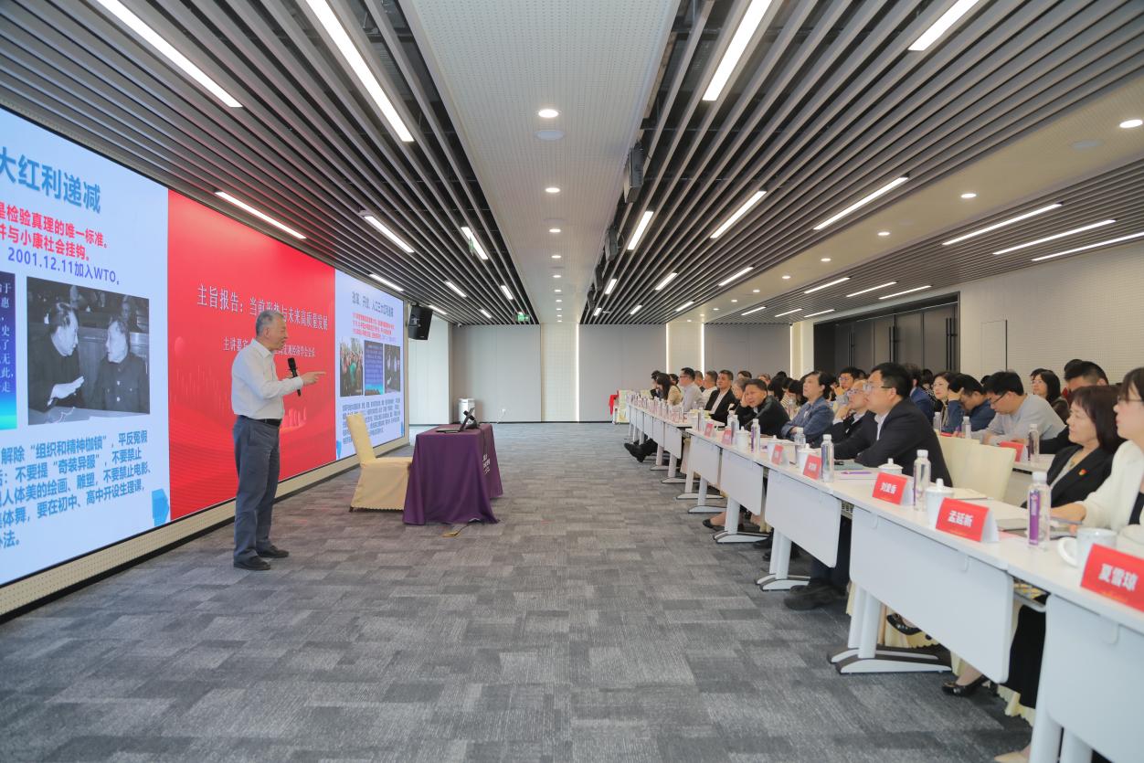 签约仪式后,陈信元副校长出席了《当前形势与未来高质量发展》报告会,与临港六校师生代表共同聆听了上海宏观经济学会王思政会长的精彩演讲。