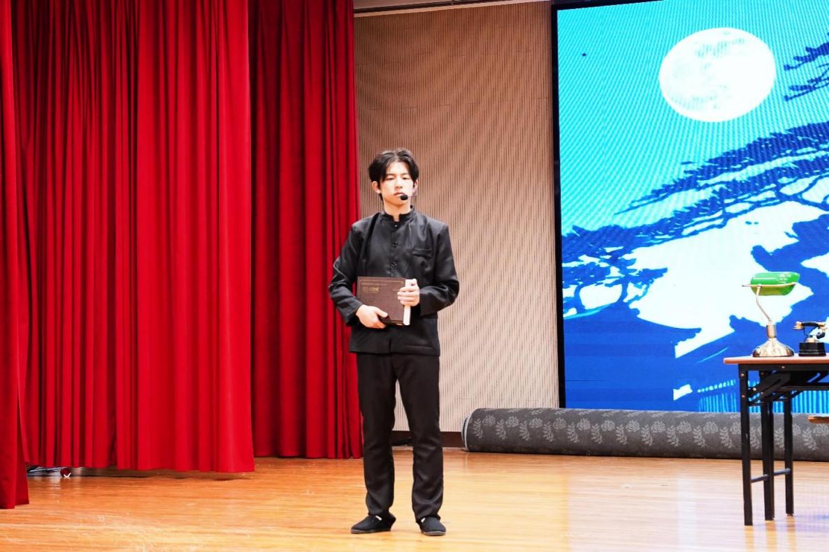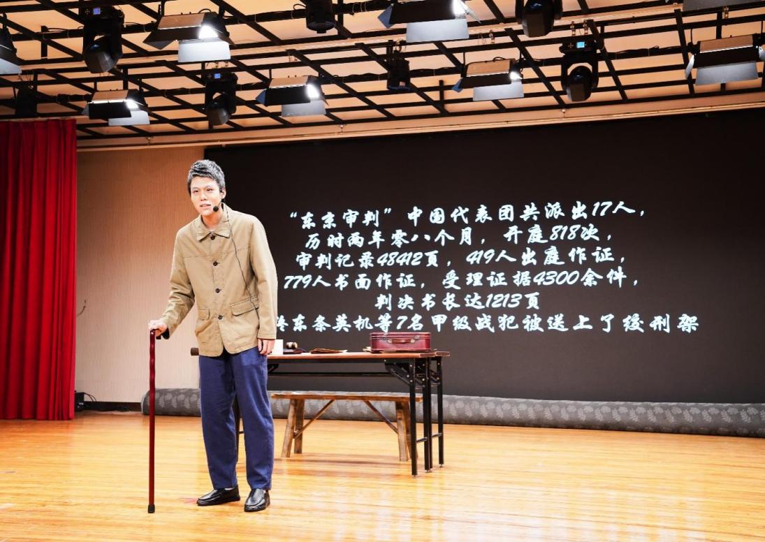 刘霄易(23级法学金融班)饰演老年高明德,一位81岁的东京审判最后的亲历者以及《元照英美法词典》编纂者之一,展现了一位法学家的深厚底蕴和对法治事业的不懈追求。