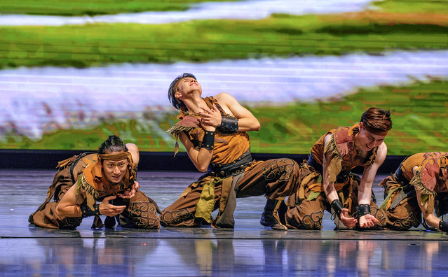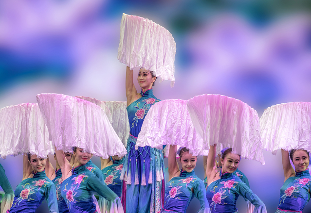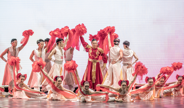 曾获得华东六省一市专业舞蹈比赛评委会大奖的女子群舞《秀色》精彩上演,“万紫千红满园春”,主题唯美,画面典雅,音乐华彩,层层递进的视觉变幻,似花海泛起朵朵涟漪,留有余味。其清雅、行云流水的舞蹈表演,令观众耳目一新。享有“中国天鹅湖”美誉的舞剧《朱鹮》片段也在观众的期待中呈现,演员们身披白色薄纱,缓缓入场,将朱鹮漫步草地的高雅姿态淋漓展现。翻动的白纱,柔和的配乐,空灵的意境,让观众身临其境,仿佛来到了朱鹮的栖息地,它们飞舞环绕,编织了一场纯白的梦。“为了曾经的失去,呼唤永久珍惜”,该剧呼唤的绿色可持续发展理念,带给观众以情感共鸣和思想启迪。