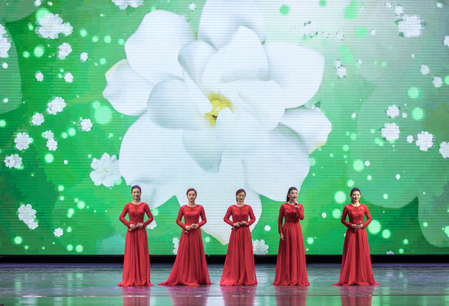 整场演出精彩纷呈,美妙的乐声、曼妙的舞姿和优美的旋律令在场观众掌声不断。演出在一首气势恢弘的舞蹈《龙飞凤舞》中拉开了序幕。随后带来的《傣家的女儿傣家的雨》傣家伞舞,像水一样灵动,似涓涓的细流,温柔而细腻,透出别样的民族风情;具有淮河流域特色的花鼓灯双人舞蹈《啷哩个啷》欢快灵动,趣味盎然;男子群舞《雁北归》,演员们用舞蹈让北归充满诗意,让北归感慨万千,挥动的双臂宛若展开翅膀的大雁,刚柔并济的舞蹈传递出大雁对归去的渴望与追求;五人舞《远方》,展现出荆棘遍地、泥泞载道、心向远方、思念故土的宏大主题;独唱《不忘初心》《像风一样》《梨花又开放》《天路》,歌声高亢嘹亮,声域宽广而穿透力强,震撼人心;由上海歌舞团五位女歌唱艺术家组成的五朵金花新民歌组合,老歌新唱,精彩演绎《茉莉花》《采茶舞曲》等经典曲目,令现场观众在悠扬美妙的歌声中久久徜徉;入选“中国梦”主题新创作歌曲《看山看水看中国》,激荡起现场观众心中深深的自豪感和浓浓的爱国情怀。
