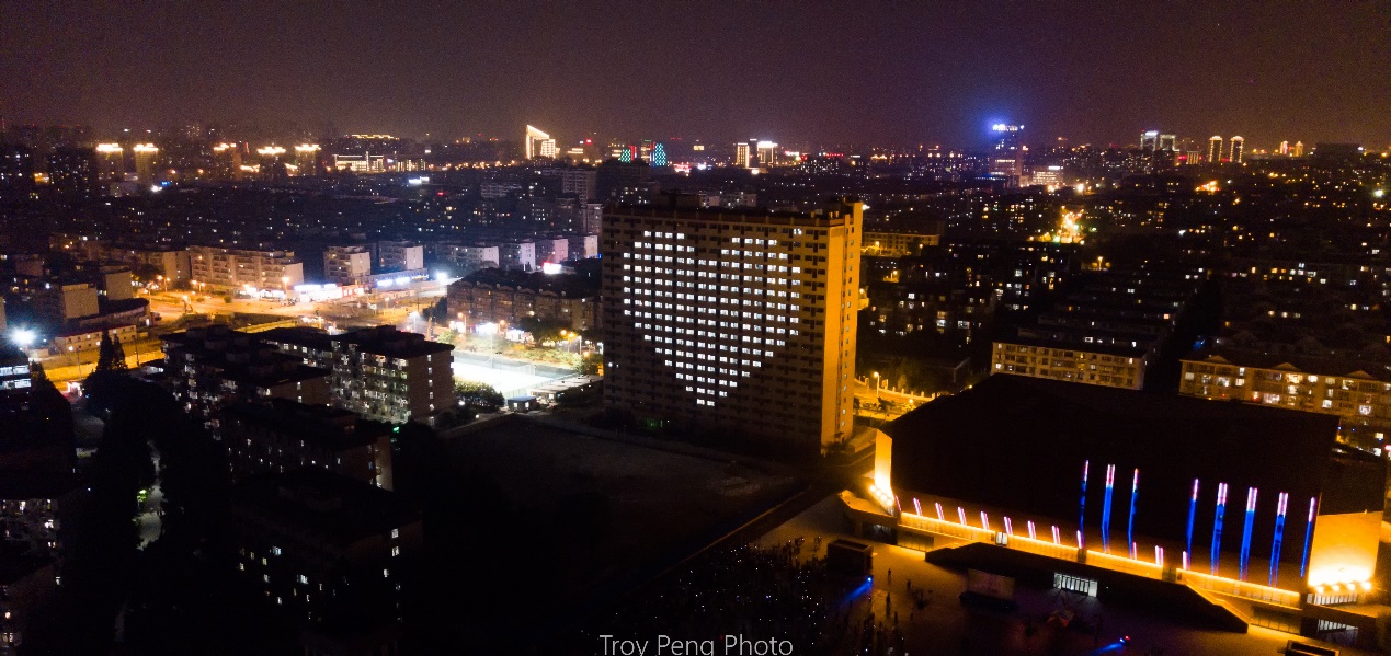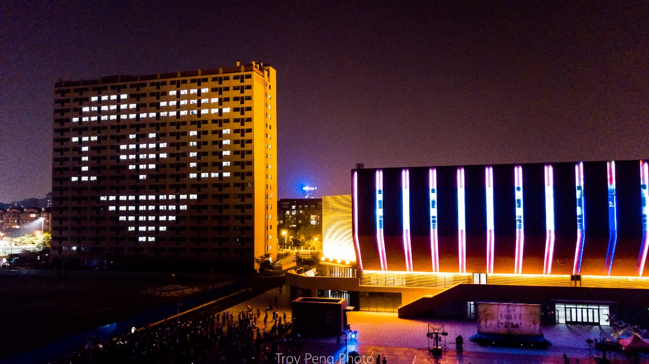 草坪音乐节的余韵还萦绕在耳畔,晚上20点10分,亮灯仪式在师生的满满期待中正式开始。现场的观众早已做好各种准备,力求找到最好的拍摄角度记录美好瞬间,更有专业玩家拿出了无人机来记录亮灯这一特别时刻。光影交错,20号宿舍楼上“SUFE”、“I love u”、“岁月如歌”、“SEE U 0626”的字样交替变换,灿若星辰、美轮美奂。伴随着图影变换的是此起彼伏的赞美声、尖叫声以及快门声,大家都在享受这属于毕业季的美好,用照片记录下此时的震撼和感动。