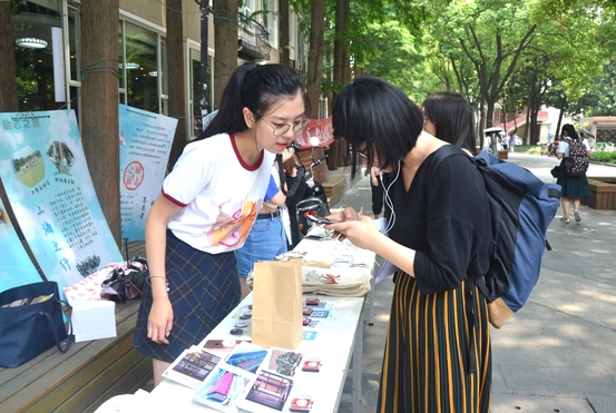 12日当天的活动包含了同源义卖、草坪音乐节和亮灯仪式三大板块。上午11点30分,上海财经大学毕业季系列活动之“爱之大同,源自一家”——同源义卖&义捐活动于我校绿叶步行街、新食堂以及新园食堂同时开展。同一片蓝天下,我们分享着爱的味道,现场的志愿者们为师生细心地讲解卖品的来源和善款的去向——本次义卖物品为本届毕业生同学亲自设计,义卖活动所得款项均捐至同源基金,用于帮助受困的上财校友。义卖物品不论明信片、手机扣还是帆布袋,都蕴藏着上财学子的浓浓心意,路过的师生纷纷驻足,伸出援手加入募捐的行列。午后的绿叶步行街满是幸福洋溢的笑脸,这里定格了校园内最美的风景,一届届毕业生的小爱传递在每一个上财人心间。