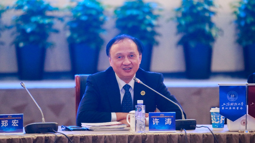会议最后,许涛主席向与会嘉宾致答谢词。他分别从人才培养、科学研究、社会服务、文化传承创新和国际交流与合作等现代大学的五大职能出发,围绕学校事业发展所需的关键社会资源的视角,从智力支持、财力支撑、平台资源三个维度谈到,在严峻的国内与国际形势背景下,上海财经大学更应厚置家国情怀,发挥学科优势,在国家改革发展进程中肩负起使命和担当,为国家做出应有的贡献。同时,他希望在这个过程中,校董及校董单位能够给予学校更多的关注与支持,学校也将充分发挥校董会的平台作用,加强学校与校董、校董与校董之间的交流和合作,共谋学校发展的新征程。最后,他代表学校对全体校董及校董单位对学校教育事业发展的关心与支持表示衷心感谢,期待各位校董及校董单位与学校携手同行,共谱合作新篇章。