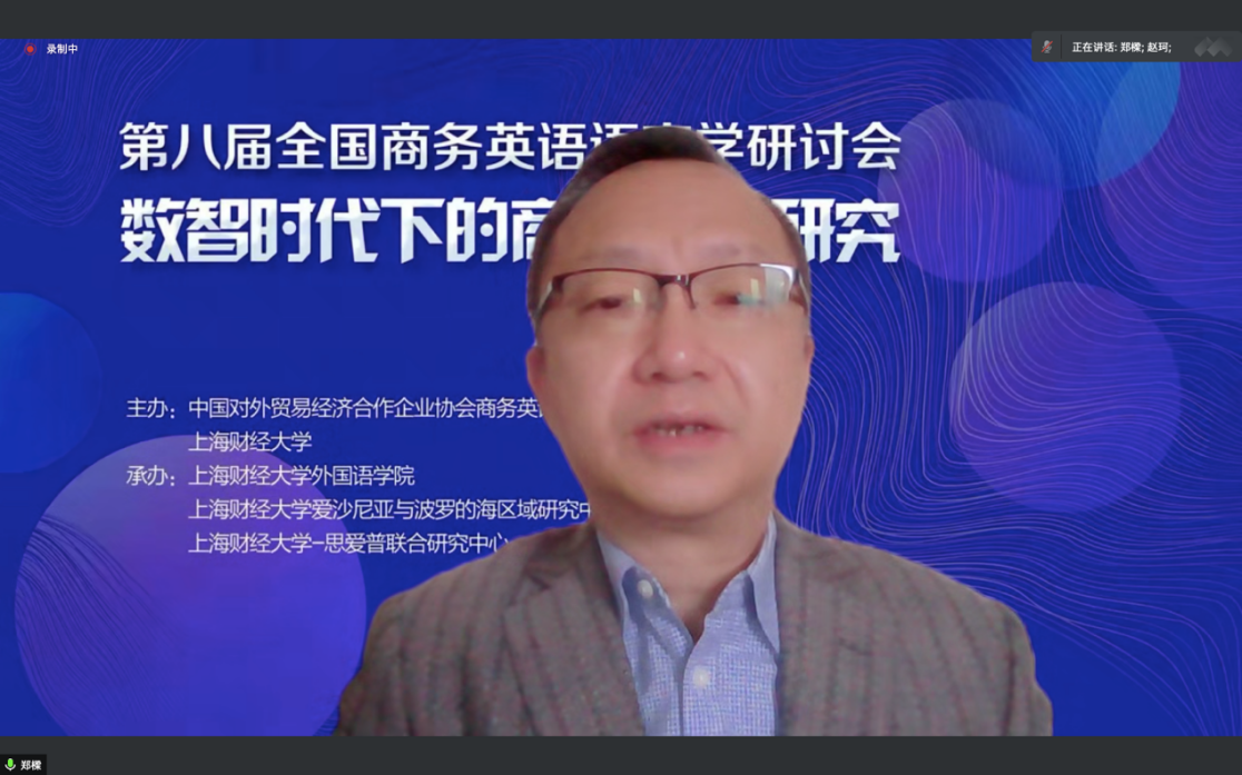 最后,中国对外贸易经济合作企业协会商务英语专业工作委员会王立非教授发表总结及闭幕词。他高度评价本次会议选题的跨学科性和前沿性,再次强调新时代背景下商务英语语言学研究及人才培养的重要性与迫切性,呼吁广大商务英语学者团结奋进,为培养更多高素质的商务外语人才不懈努力,让语言教育和研究真正服务国家和社会的发展,体现广大商务英语学者的学术价值和社会价值。