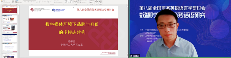 香港理工大学冯德正教授分享了《数字媒体环境下品牌与身份的多模态建构》研究,结合四项研究案例,讨论在数字媒体时代背景下,基于商务交际与传播的多模态化的四大研究机遇:城市品牌宣传、企业社会责任和形象建构、后疫情时代的新产品与服务以及多模态的女性身份建构。
