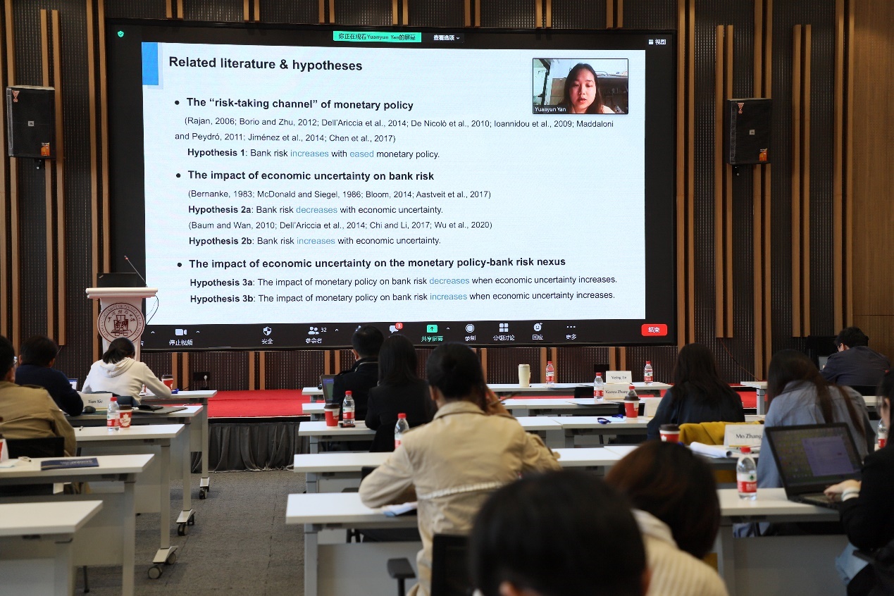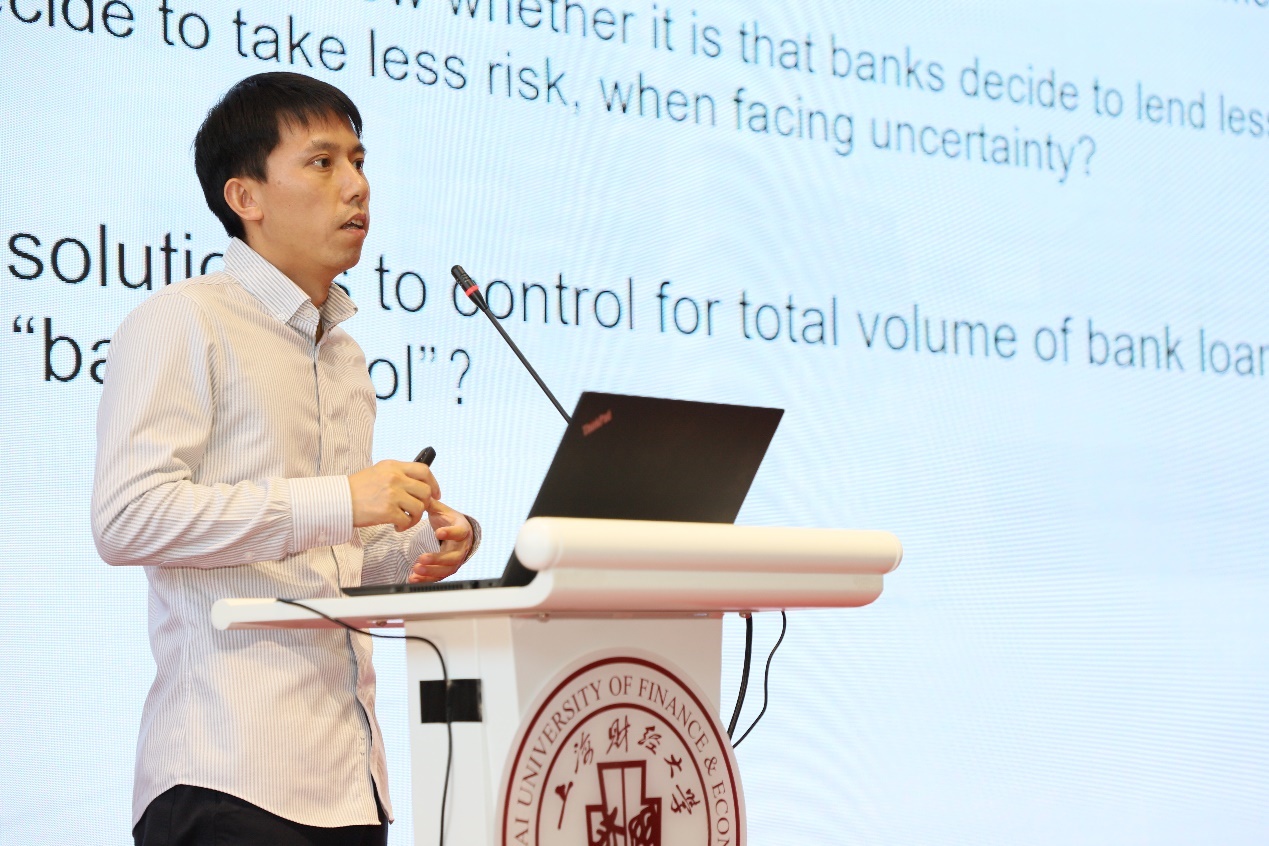 西南财经大学严苑云博士演讲的主题是“Monetary Policy, Economic Uncertainty and Bank Risk: Cross-country Evidence”。文章选取了43个国家的1100多家上市商业银行作为样本,通过纳入经济不确定性,重新探索了货币政策对银行稳定性水平的影响。结果表明,银行稳定性水平随着货币政策收紧(放松)而增加(降低);在经济不确定性上升时,货币政策对银行稳定性水平的影响被削弱;不确定性的上升对规模较小、流动性较低和收入多元化程度较高的银行影响更为显著;不确定性对于调节货币政策对银行杠杆风险的作用不明显,而会减弱货币政策对银行投资组合风险的作用;当不确定性上升时,在宽松的货币政策环境下,银行可能会推迟资产向风险较高项目的重新配置,而在收紧货币政策时,银行风险承担的暂停调整并不明显;当央行收紧(放松)货币政策时,银行对系统性风险的作用通常会降低(增加)。上海财经大学朱林可副教授指出,文中应该区分不确定性对贷款量和贷款风险的影响,此外,国家特征及其交互项没有得到控制,会造成一定的遗漏变量问题。
