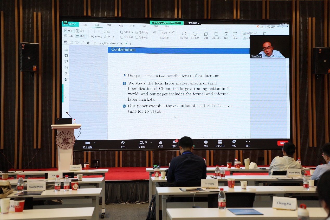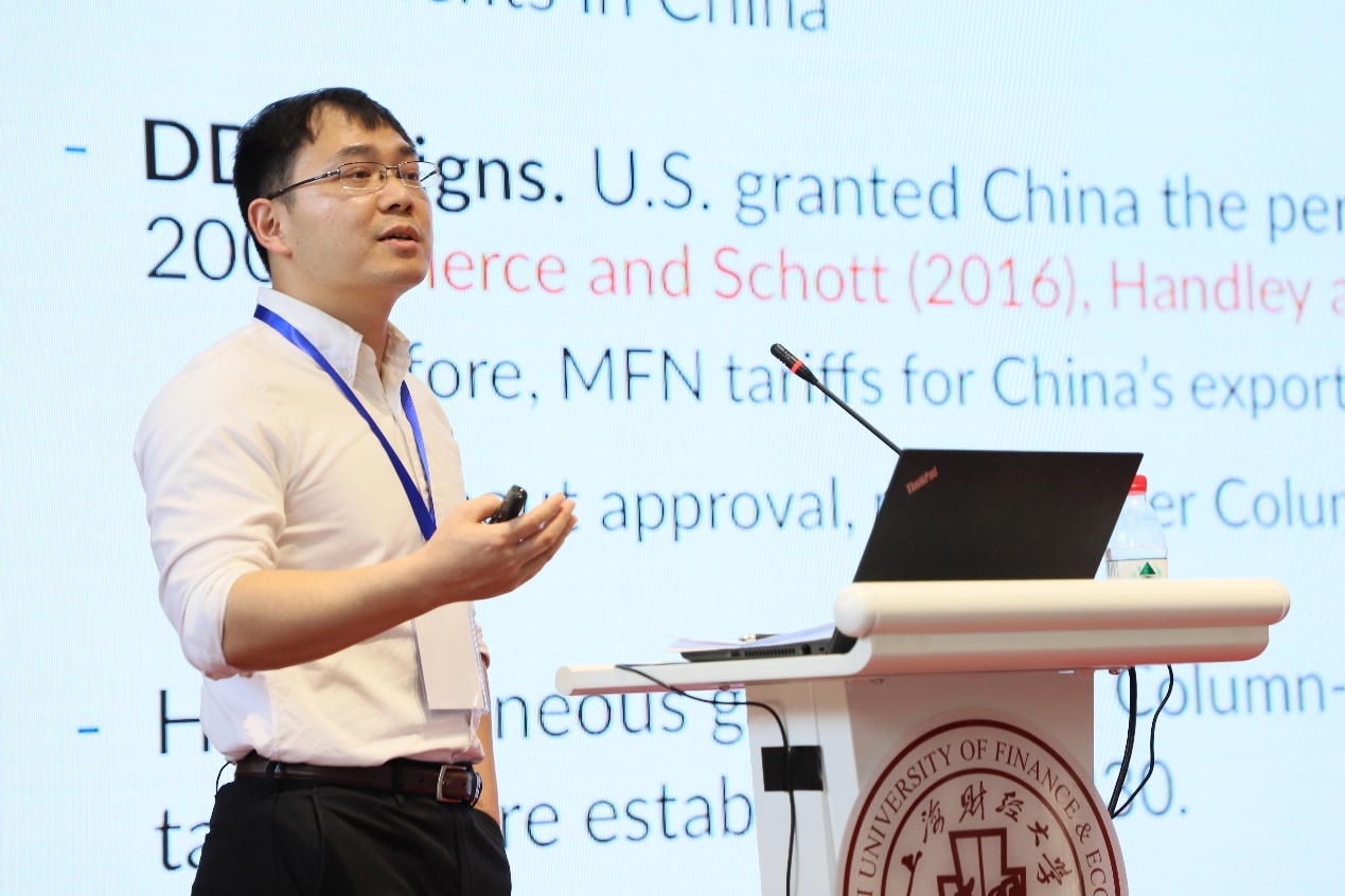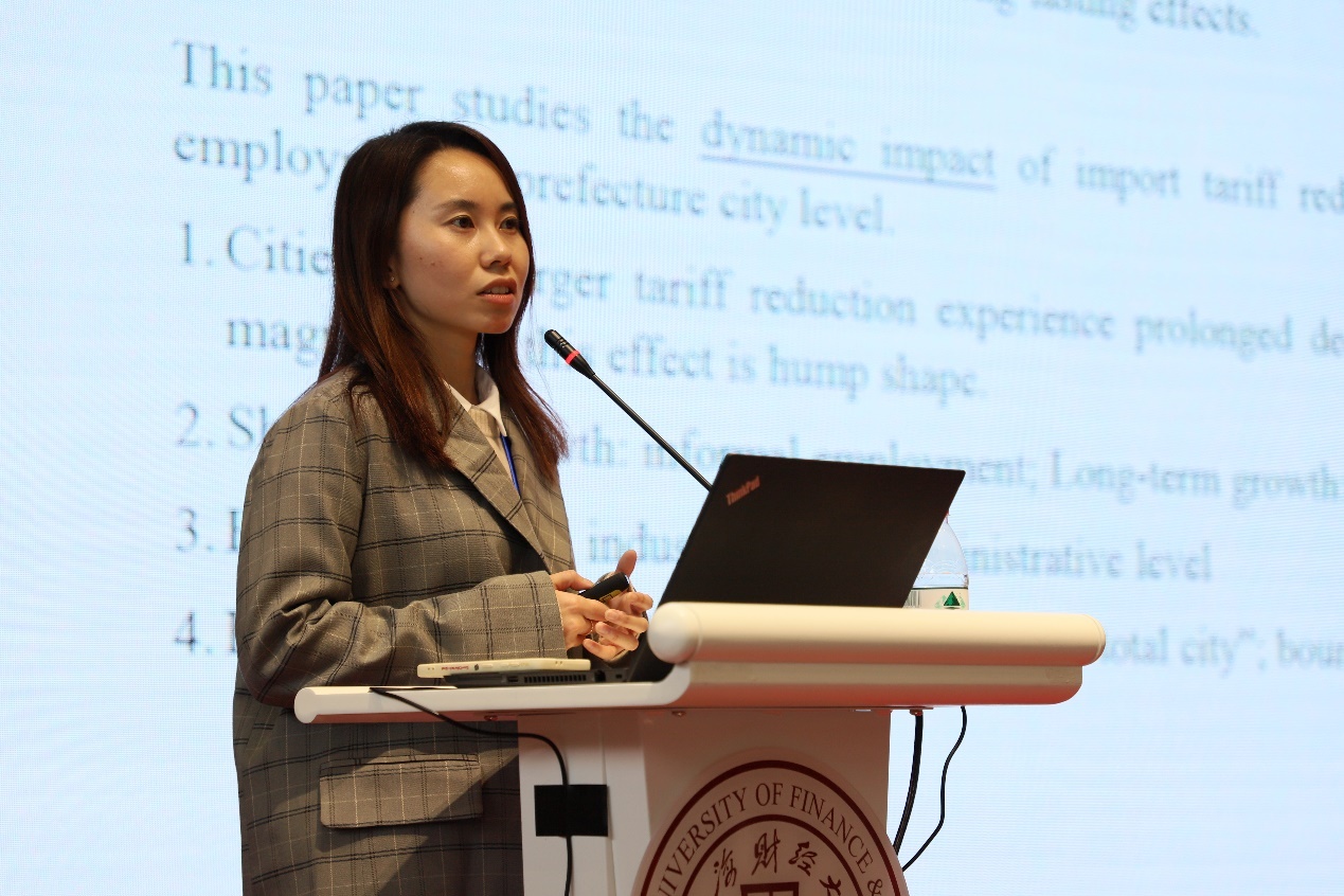 南开大学周申教授演讲的主题是“Trade Liberalization and Regional Labor Market Dynamics: Evidence from China’s WTO Accession”。他利用中国加入WTO这一事件分别探讨了贸易自由化对中国正式劳动力市场和非正式劳动力市场影响的演变过程。实证结果显示,相较于其他城市,面临较大关税削减城市的平均工资出现了长期下降,但随着时间的推移,不利影响的幅度呈驼峰形;其次,关税冲击短期内不影响区域正式就业规模,长期来看,关税冲击会导致区域正式就业规模的扩大,区域关税的降低将在短期内影响非正式就业。此外,长期增长对正式就业的影响主要来自制造业,并且更高层次的城市不经历正式工资增长的负面影响。来自华东师范大学的齐彤助理教授肯定了该研究的价值,建议在关税冲击的衡量中考虑非贸易部门、中间品和最终品差异等因素,并认为可以通过微观人口普查数据完善正式和非正式劳动力市场的定义,同时在实证机制上提出了进一步的完善建议。