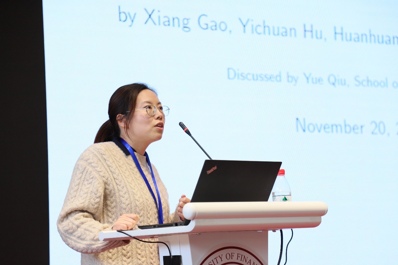 复旦大学黄毅教授演讲的主题是“Bond Financing Channel of Monetary Policy: Evidence from Chinese Bank Lending”。论文使用政策性银行详细的贷款信息,运用实证手段,提出货币政策通过影响债券利率进而影响政策性银行融资成本,最终影响该行贷款利率的新传导机制,并发现该机制在货币政策收紧期发挥更为明显的作用。此外,当贷款对象所处地区经济发达程度较低、财政能力较弱、金融渗透率较低时,债券利率渠道能更有效传导货币政策。华东师范大学李嫦助理教授对该文章进行了点评,认为本文利用了政策性银行特殊的融资模式,利用独特而详细的数据,从一个新颖的角度研究货币政策的传导。同时,李嫦助理教授就货币政策如何落实到政策性银行、政府干预的内生性问题、货币政策的多种衡量方式、货币政策异质性原因等方面给予相关修改建议。
