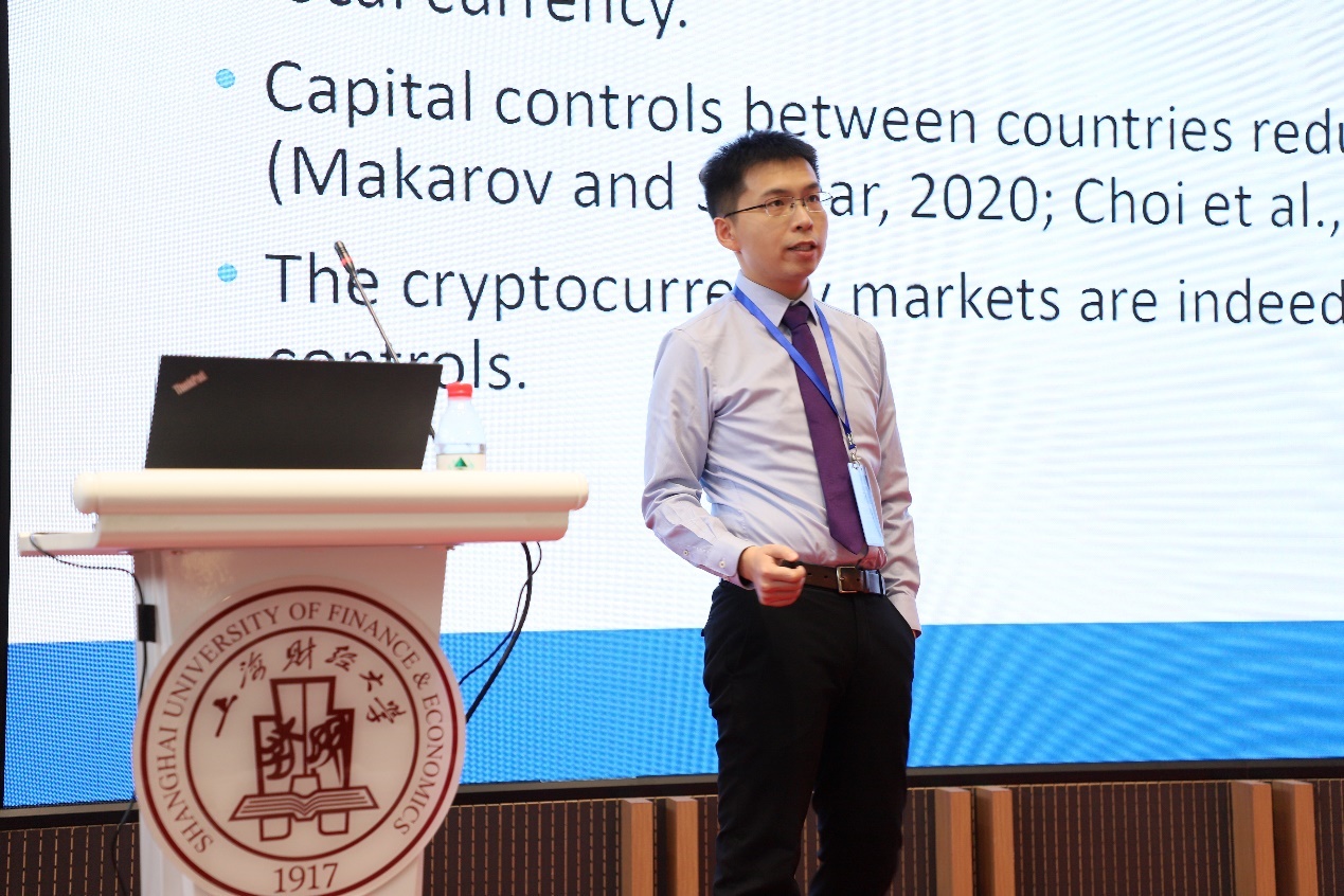 上海外国语大学张晓昱助理教授演讲的主题是“Cryptocurrency Price Discrepancies under Uncertainty: Evidence from COVID-19 Pandemic”。文章以COVID-19的爆发和随后的封锁政策作为自然实验,采用DID方法探讨了国家不确定性对比特币价格差异的影响,结果发现在有新冠肺炎确诊病例和严格实施封锁政策的国家,比特币相对价格更高,且这种影响在卫生条件以及个人主义程度较低的国家更强。进一步地,文章还验证了“避风港”假设,即人们会将加密货币视为一种风险对冲渠道。上海财经大学谢天副教授认为这篇文章的研究主题有趣、逻辑合理,并提出如果有更细化的数据集,实证结果将更具说服力和稳健性。