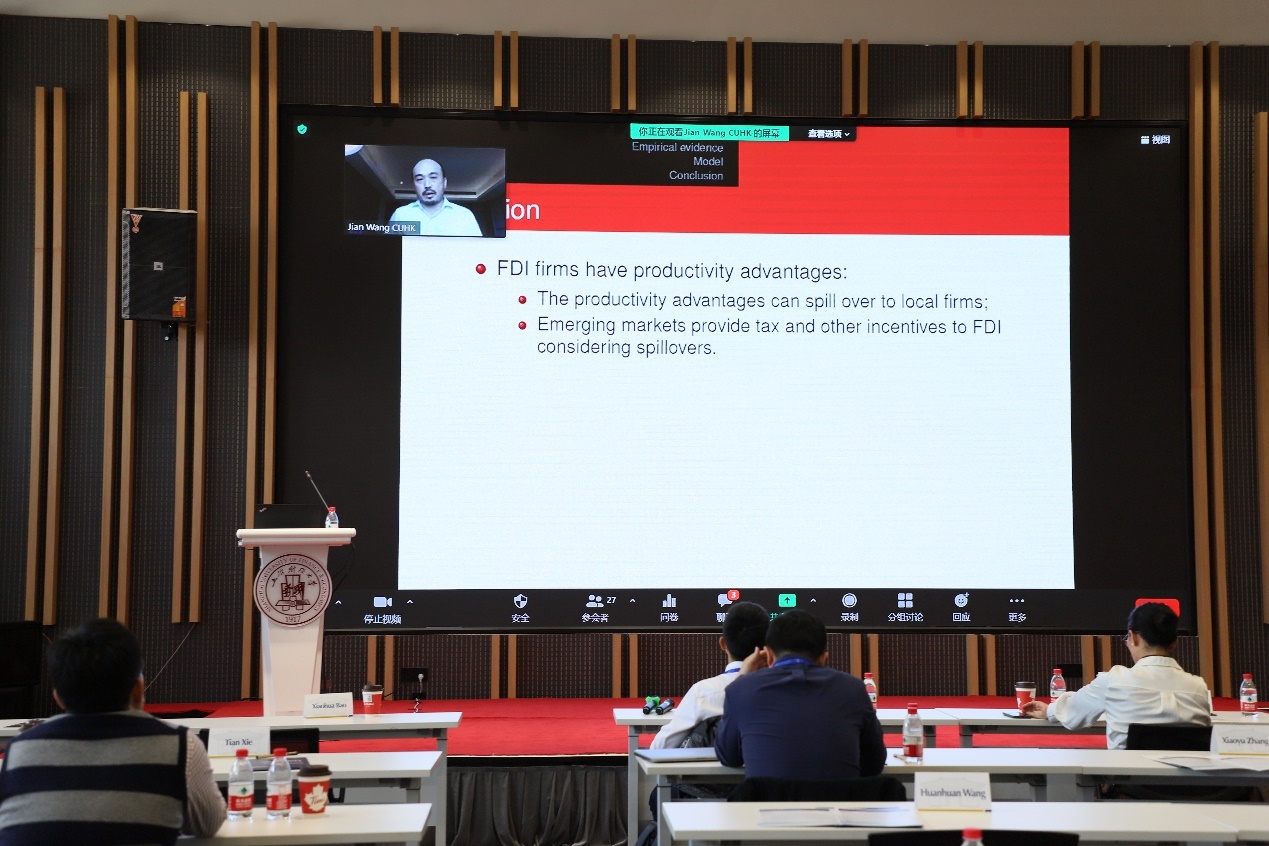 香港中文大学(深圳)王健教授演讲的主题是“FDI and Firm Productivity in Host Countries: The Role of Financial Constraints”。文章研究了FDI企业的融资优势对东道国企业生产力的影响,通过在Melitz模型中加入融资约束和FDI,并结合中国工业企业数据检验金融脆弱性和企业生产力门槛之间的关系,实证发现FDI企业可能比本地企业有更低的生产力门槛,特别是在金融脆弱部门。此外,文章还进行了反事实的政策分析,研究表明,向FDI企业提供税收优惠可能会适得其反,因为吸引的FDI企业的生产力甚至可能低于本地企业。复旦大学奚锡灿助理教授对论文进行了细致的点评,他认为文章基于FDI企业的融资优势研究其对生产力的影响是一个不错的想法,同时给出了自己的建议。例如,在实证方面可以进一步考虑FDI企业在不同行业间的进入成本差异以及国有企业和民营企业的融资约束差异等问题。