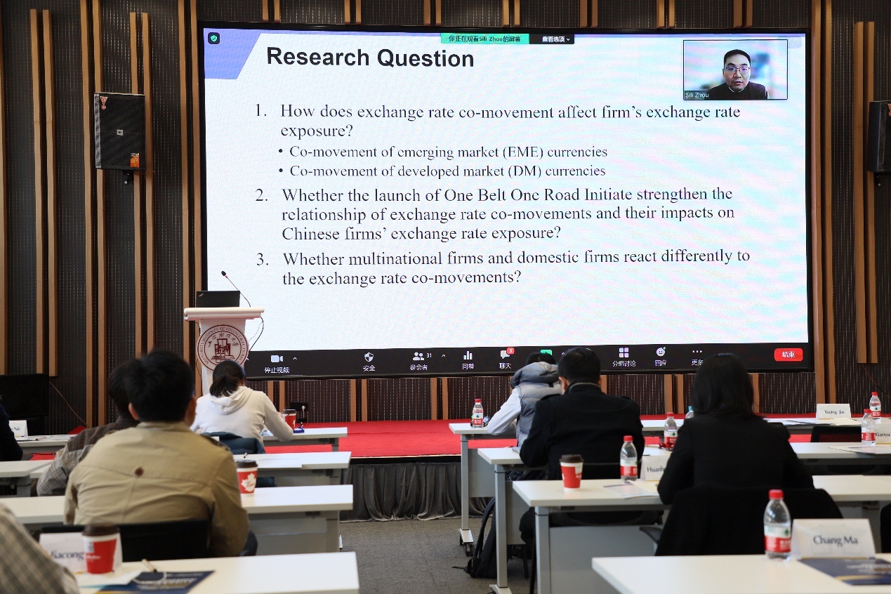 中国人民大学何青教授演讲的主题是“Exchange Rate Co-movements and Corporate Foreign Exchange Exposures: A Study on RMB”,该文研究了国家之间的双边汇率联动与中国企业汇率暴露风险的关系,发现:中国企业汇率暴露风险在国家之间的双边汇率联动波动较高的时期会显著增强。新兴市场(EME)国家之间的双边汇率联动影响弱于发达市场(DM)国家之间的双边汇率联动影响。上述国家之间的双边汇率联动对中国企业汇率暴露风险造成的影响在“一带一路”倡议启动后、人民币被纳入SDR篮子以后以及跨国企业中更为明显。研究证据表明,人民币国际化(即其锚定效应)有助于降低中国企业的汇率暴露风险。复旦大学周思力助理教授从因果识别、机制渠道、异质性等多方面提出了诸多建设而有针对性的意见。