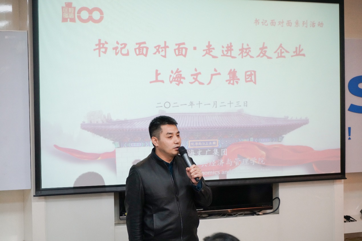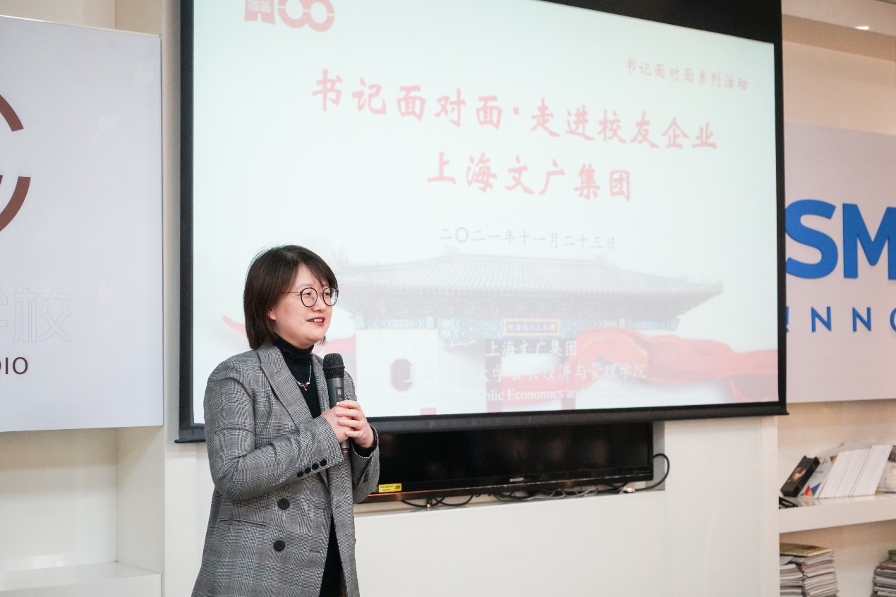 为进一步贯彻落实用习近平新时代中国特色社会主义思想教育,用党的理想信念凝聚人,用社会主义核心价值观培育人,用中华民族伟大复兴历史使命激励人,培养造就堪当时代重任的接班人,同时响应母校 “就业服务月”、“我为学生办实事”主题活动的号召,加强同学们的职业素养与就业竞争力,11月23日下午,公共经济与管理学院组织的“我与书记面对面·走进校友企业——上海文广集团(SMG)”走访活动举行。