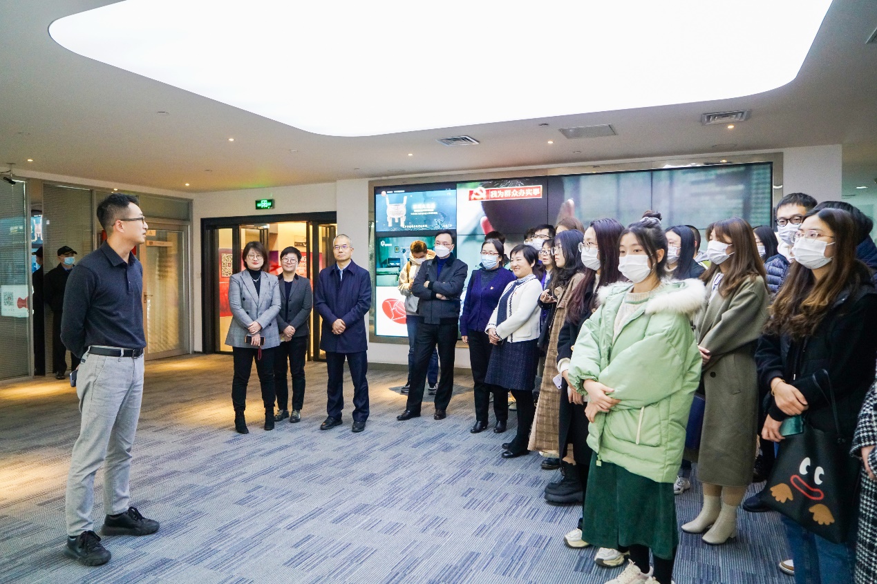 同日,公共经济与管理学院党委走进上海文广集团,以创新党课的形式学习百年党史和十九届六中全会精神。公共经济与管理学院党委书记方芳教授、公管学院党委副书记周巧、辅导员郭倩怡、校友会秘书王诗琪一起带领近30名学生参加此次活动,同上海文广集团副总裁钟璟等优秀校友进行对话交流,校纪委副书记杨晖、国际教育学院直属党支部书记林华观摩了本次党课。公管学院校友会会长杨玉成 、秘书长邬咏梅 、副会长兼职业发展中心主任崔建平多位校友党建辅导员也共同出席。