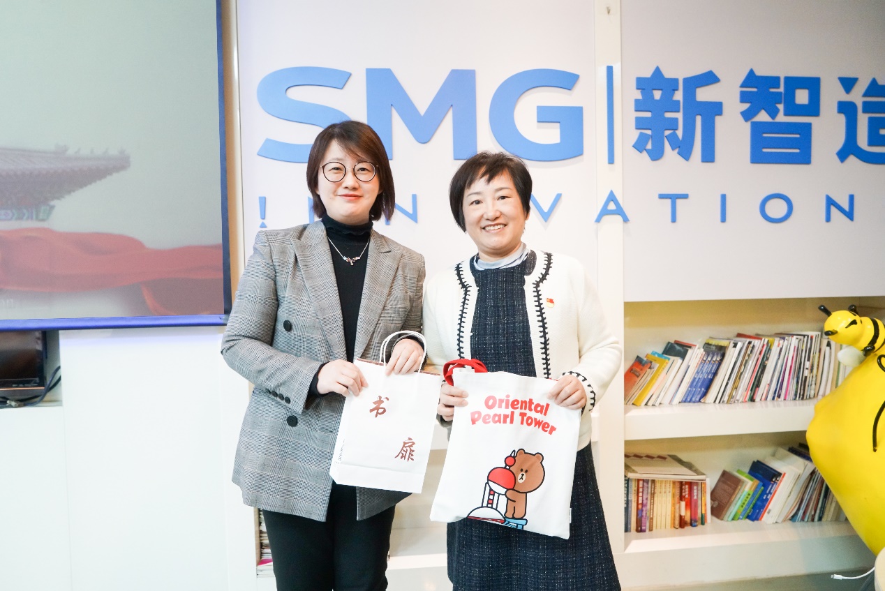 随着时间的推移,本次的企业走访到了尾声,公共经济与管理学院党委书记方芳教授与上海文广集团副总裁钟璟校友互赠校企文宣品并表示感谢。