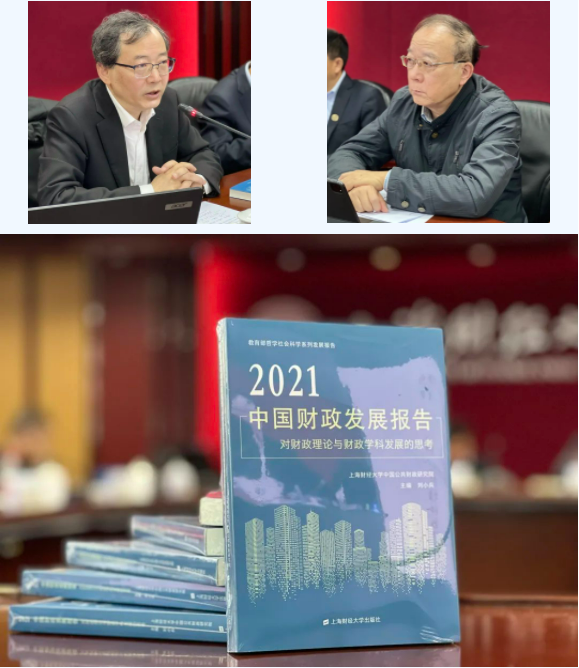随后进行了上午活动的重头戏,《2021中国财政发展报告——对财政理论与财政学科发展的思考》新书发布会。中国财政学会理事、财政学教指委副主任委员、上海财经大学公共经济与管理学院院长刘小兵教授向与会专家详细介绍了今年财政发展报告的主题以及研究框架,新书从政治学、社会学、经济学等多个角度开展研究,系统回答财政学的基本问题。中国财政学会常务理事、上海财经大学公共经济与管理学院教授委员会主席丛树海教授从四个方面向大会介绍了《中国财政发展报告》的23年的发展历程以及报告对于中国财政学科起到的作用和意义。