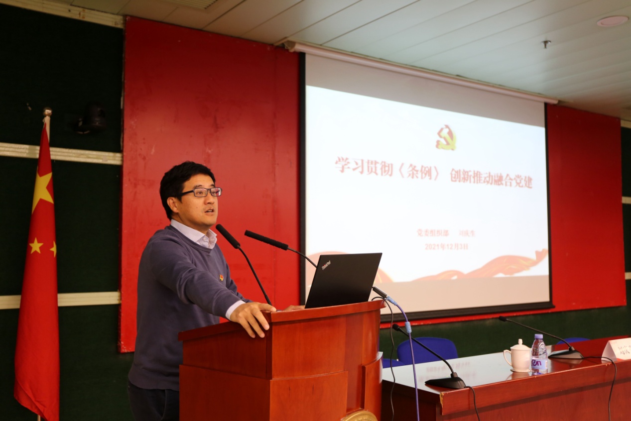 颁布《中国共产党普通高等学校基层组织工作条例》是新时代坚持和加强党对高校全面领导的一项标志性举措,是百年来高校党的建设工作的一次里程碑事件,为高校各级党组织以及全体党员干部师生践行“两个维护”、坚守初心使命提供了制度化保证。12月3日上午,上海财经大学党委常委、党委组织部部长刘庆生作了“学习贯彻《条例》创新推动融合党建暨干部监督工作相关政策解读”辅导报告。他对《条例》修订的背景、《条例》的结构布局、《条例》调整完善的重点内容和《上海财经大学中层干部因私出国(境)证件管理办法(2021年修订)》《上海财经大学领导人员兼职管理办法(2021年修订)》《关于领导干部及时报告个人有关事项的通知》的相关注意事项进行了专项辅导。