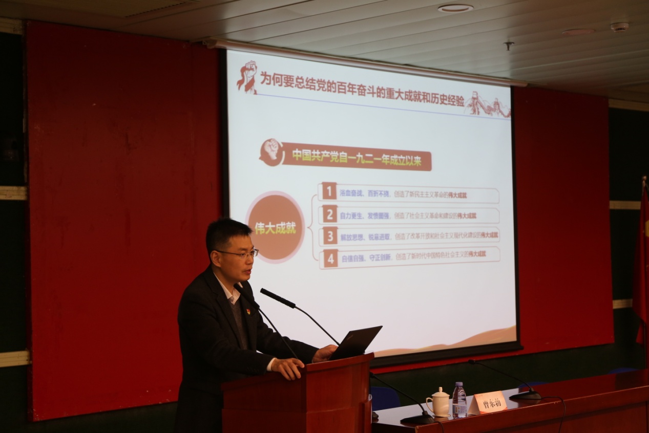 12月2日下午,上海财经大学党校副校长、党委组织部副部长、党委宣传部副部长曹东勃以“新百年新征程上影响深远的全新路标—学习六中全会精神的几点思考”为题作辅导报告。立足当下,他从“十九届六中全会的基本概况”“五中全会以来中央主要工作”“总结成就和经验的目的意义”“伟大成就、飞跃与主要代表”“历史意义、经验与未来展望”“若干重难点问题的理解讨论”六个方面,对党的十九届六中全会精神作了宣讲和阐释。