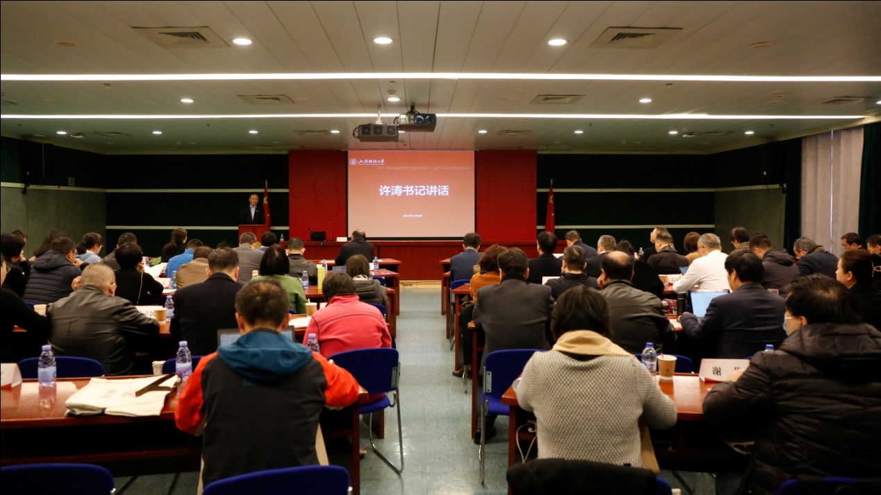 开班式在雄壮的国歌声中拉开序幕。之后,许涛书记重点从“政治自觉”“思想自觉”和“行动自觉”三方面作动员讲话。一是将学习好、贯彻好、落实好党的十九届六中全会精神,作为当前和今后一个时期全校各级党组织的重要政治任务和政治责任。许书记表示,六中全会闭幕以来,学校坚持“以上率下、上下联动”,从常委会到党委理论学习中心组到全体基层党组织全面学习,师生通过各种方式持续关心关注全会召开和重要决议,在线上线下引发了热烈讨论和反响。各二级单位应以高度的政治自觉迅速行动起来,在中心组学习、教职工政治学习、师生党员教育过程中及时加入对六中全会精神的专题学习、交流研讨环节,当前和今后一个时期,要继续将这项工作推向深入。二是深入推进党史学习教育,深入学习上海城市党建在各领域的宝贵经验。许书记要求,立足新的百年奋斗目标,以坚定的思想自觉,开展第三阶段党史学习教育,全校中层正职干部要先学一步、学深一层,以更好地指导和落实本部门本单位的学习部署,在我们多年来创设的党建工作品牌矩阵和总结的重要工作方法基础上深耕细作,创造出“有声有色,红红火火”的基层党建工作新格局,再添一把火,再加一点温度,将借鉴上海城市党建在各领域的成功经验与各二级单位基层一线的创新探索相结合,开创学校事业发展的新局面。三是汲取历史智慧,深化学校教育改革创新,在“十四五”新发展格局中有效提升二级单位领导班子建设与治理能力。许书记说,我们党是一个具有强大学习能力和学习传统的百年大党。各二级党组织都要建设成学习型党组织,各级干部都要增强自己的学习本领。从历史中汲取智慧和力量,就是干部增强学习本领的题中应有之义。我们要结合党的百年奋斗历史,结合学校东迁百年的校史,重点围绕习近平总书记在全会上的重要讲话和全会《决议》,原原本本学、全面系统学、深入思考学、联系实际学,深刻理解新时代党的教育方针的具体要求和贯彻党的教育方针的重大意义,以坚实的行动自觉,推动学校对标党的教育方针深入落实立德树人根本任务。