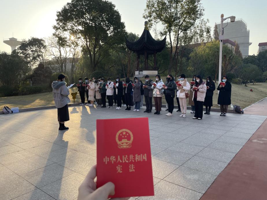 12月4日清晨,伴着第一缕晨光,同学们齐聚在春晖湖畔进行宪法晨读暨宪法传唱活动。虽然早上的温度还有些低,但同学们晨读宪法的热情足以驱赶寒冷的晨雾。在主持人的引导下,宪法晨读活动有条不紊的进行。同学们手持宪法,目光坚定,声音洪亮。通过领读、集体朗读等多种形式,同学们共同诵读宪法重要条文。同时,通过传唱、传颂宪法主题诗歌,同学们将宪法与节奏律动结合在一起,体味不一样的宪法形式。在活动中,大家学习到了宪法的基本原则和相关知识,领略宪法的精神,感受法治的光辉,进一步加深了对宪法的理解。