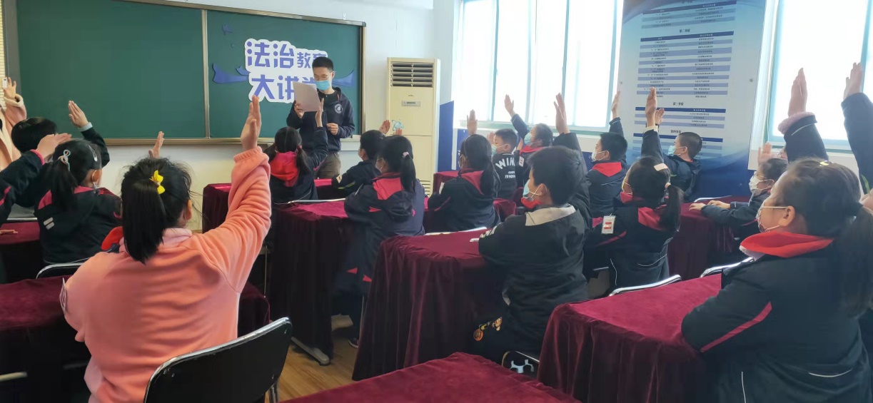 为了巩固小朋友们在上述宣讲活动中的学习成果,引导他们在生活中更好地懂法、用法,本次活动还专门开设了法律知识问答竞赛。志愿者徐锦宜、鲁煜恺以小朋友们的日常生活情景作题设,帮助他们将法律意识运用到实际学习、生活中,并对涉及的宪法等法律问题进行普及讲解。在答题过程中,小朋友踊跃地举手抢答,不但获得了带有法学标志的文具纪念品,还更深入地学习了相关法律知识,让法治的幼苗在心中益加茁壮成长。