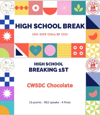 12月5日,高中组与大学组分别经过三轮、四轮晋级赛最终决出两个组别的冠军。进入高中组决赛的队伍均来自中国国际高中代表团队,最终CWSDC Chocolate赢得高中组冠军。进入大学组决赛的队伍分别来自北京大学与澳门大学混合组Judy’s Favorite Kids、爱丁堡大学与澳门大学混合组Prefer My POI after 6、伯明翰大学与北京语言大学混合组3/4 Chinese,以及纽约大学阿布扎比分校代表队NYUAD Falcons,最终NYUAD Falcons赢得大学组冠军。