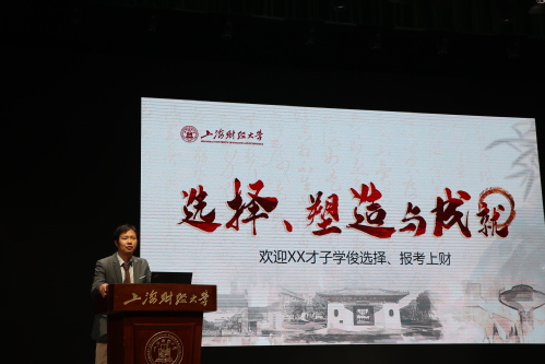 招生办公室副主任彭曦老师为同学们做了招生宣讲方面的培训,内容涵盖了我校的历史发展、招生政策、培养方案与就业深造等。他表示我校作为中国最早的商科大学,始终坚持以人为本、因材施教,着力打造精品化的教育,通过一流专业的持续建设,为同学们打造最好的成长空间。“穷则独善其身,达则兼济天下”,学校在培养专业人才的同时,亦注重人文关怀和家国情怀的培养,期望大家继往开来,以实际行动践行“厚德博学,经济匡时”的校训。