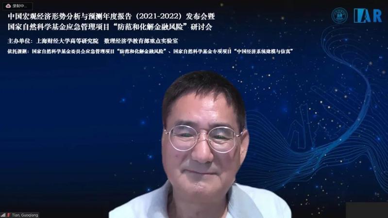 田国强教授对中国宏观经济形势分析与预测项目和《中国宏观经济形势分析与预测年度报告(2021-2022)》进行了介绍。他表示,该项目由近30位国内外顶尖大学毕业的博士组成,为分析与预测工作的顺利开展提供了扎实的人才保障;建立了充分考虑中国国情的、由14个板块组成的大型宏观分析与预测模型,包括近期新增加的教育板块、环境与高质量发展板块,并在进一步扩充和完善中,使模型更具系统性、科学性和现实性;强调短期风险防控和中长期可持续发展改革治理的稳中求进相结合,为政府决策提供科学依据。该项目研究同时也得到国家自然科学基金委员会应急管理项目“防范与化解金融风险”和国家自然科学基金专项项目“中国经济系统建模与仿真”的资助。