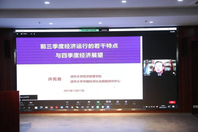 许宪春主旨演讲主题为《2021年我国前三季度经济运行的若干特点与四季度经济展望》。他指出,前三季度经济运行呈现如下特点:生产角度,GDP同比增速逐季明显回落,两年平均增速相对稳定;第二产业增加值增速受制造业、建筑业增加值增速回落影响在第三季度明显下滑;第三产业对经济增长贡献突出。需求角度,居民消费支出增速还没有恢复到疫情前的水平,政府消费支出低于疫情前的水平;净出口需求在前三季度表现最好;投资需求增长乏力。收入角度,全国居民可支配收入增速还没有恢复到疫情前的水平;工业企业利润增速比较高,但两极分化比较突出,上游行业利润成倍增长,下游行业利润增速低或下降,对下游中小企业的影响尤其明显;全国一般公共预算收入保持较快增长。新经济新动能角度,信息传输、软件和信息技术服务业增加值保持快速增长;网上零售额也保持快速增长,对消费的拉动作用持续显现;新经济新动能表现比较好。价格角度,居民消费价格温和上涨,生产领域价格涨幅明显扩大;CPI和PPI“剪刀差”继续扩大,达到有历史记录以来最高值;国际大宗商品价格保持高位促使PPI持续上涨,而PPI对CPI的传导作用并不明显。