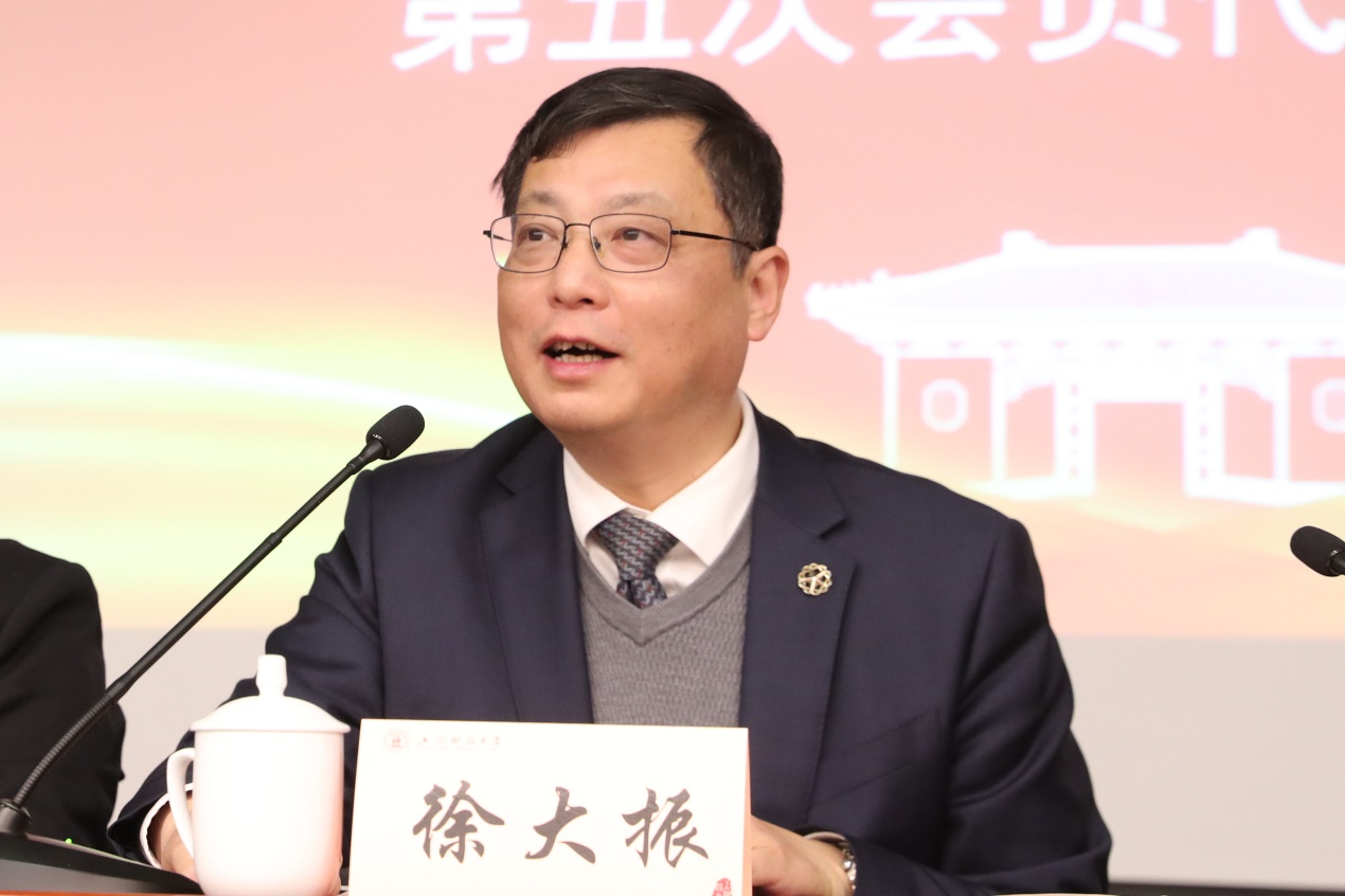 徐大振代表市侨联对大会表示热烈的祝贺,对上海财经大学侨联为侨联组织做出的贡献表示感谢。他表示,上财侨联在校党委的领导下,坚持围绕中心、服务大局,在凝聚侨心、汇聚侨智、发挥侨力、维护侨益、为侨服务等方面做了大量工作,涌现出了不少侨界先进人士,得到上级组织的肯定和嘉奖。他对新一届委员会提出三点希望:一是要旗帜鲜明讲政治,团结引领广大侨界群众画好最大同心圆。要提高政治站位,强化思想引领,以“立德树人”为己任,以“根魂梦”为主线,讲好中国故事、上海故事和上财故事。二是要融入大局谋发展,为助力高校和地方高质量发展做出侨界贡献。要搭好“侨”牌,提升服务大局的水平;要精准对接,发挥引才引智的优势;要发挥“地方侨联+高校侨联+校友会”工作机制作用,搭建桥梁平台,服务上海人才工作战略。三是要改革创新再出发,开创侨联工作新局面。要做好侨情调查,为侨务工作科学决策奠定基础;要做优侨联品牌,注重发挥高校优势;要以党的政治建设为统领,加强侨联班子和干部队伍建设;要以人为本,凸显为侨服务的温度。