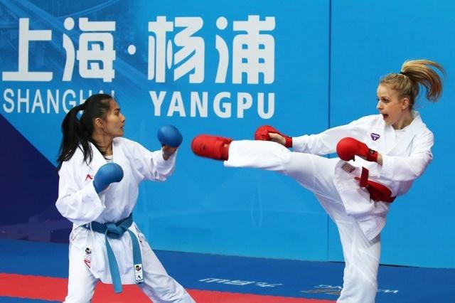 12月的上海已经深深地透出“湿冷”,在上海财经大学体育馆却是暖意融融,天气丝毫没有影响参赛选手的激情。在为期三天的比赛中,运动员们在组手、个人型、团体型3个大项14个小项中展开了激烈的斗争。最终,在女子组手-68kg级项目的决赛中,中国空手道国家队队员龚莉,迎战来自埃及的选手阿卜杜勒-阿齐兹。两位运动员同为19岁,并且都在2018年都获得过K1A系列赛的冠军。二人再次相遇,强强对决。最终,龚莉以4-0的绝对优势战胜对手,斩获金牌。女子组手+68kg级项目的比赛上,中国空手道国家队高梦梦在决赛中对阵来自希腊的查茨里亚杜·艾莱尼。结果以1-3的成绩,惜败对手,获得银牌。