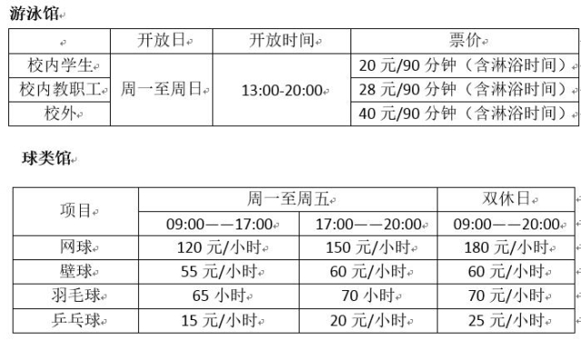 1月14日至1月26日开放时间、价目如下:(游泳池1月26日开始不开放)
