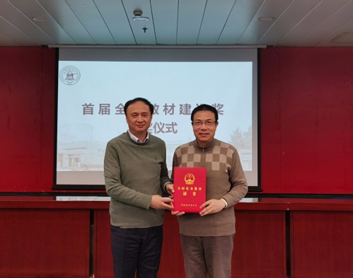 为表彰奖励优秀教材和对教材建设作出突出贡献的个人,此次会议特设了首届全国教材建设奖颁奖环节。全国教材建设奖评选是新中国成立以来首次设立的全面覆盖教材建设各领域的专门奖励项目,是教材领域的最高奖项,是检阅、展示教材建设服务党和国家人才培养成果,增强教材工作者荣誉感、责任感,推动构建中国特色、世界水平教材体系的一项重大制度。我校徐飞教授主编的《战略管理(第4版)》荣获全国优秀教材(高等教育类)二等奖,刘兰娟教授荣获全国教材先进个人荣誉称号。党委书记许涛为徐飞教授和刘兰娟教授颁发了获奖证书。