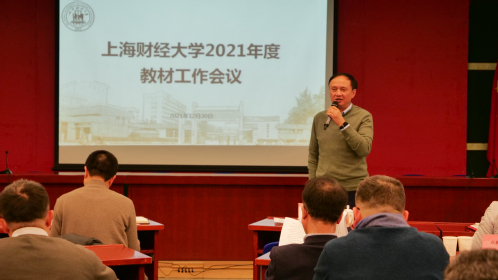 12月30日上午,上海财经大学2021年度教材工作会议在行政楼一楼报告厅召开。出席本次会议的有校党委书记许涛、副校长刘兰娟、副校长姚玲珍、党委副书记朱鸣雄以及上海财经大学教材委员会委员,会议由常务副校长徐飞主持。