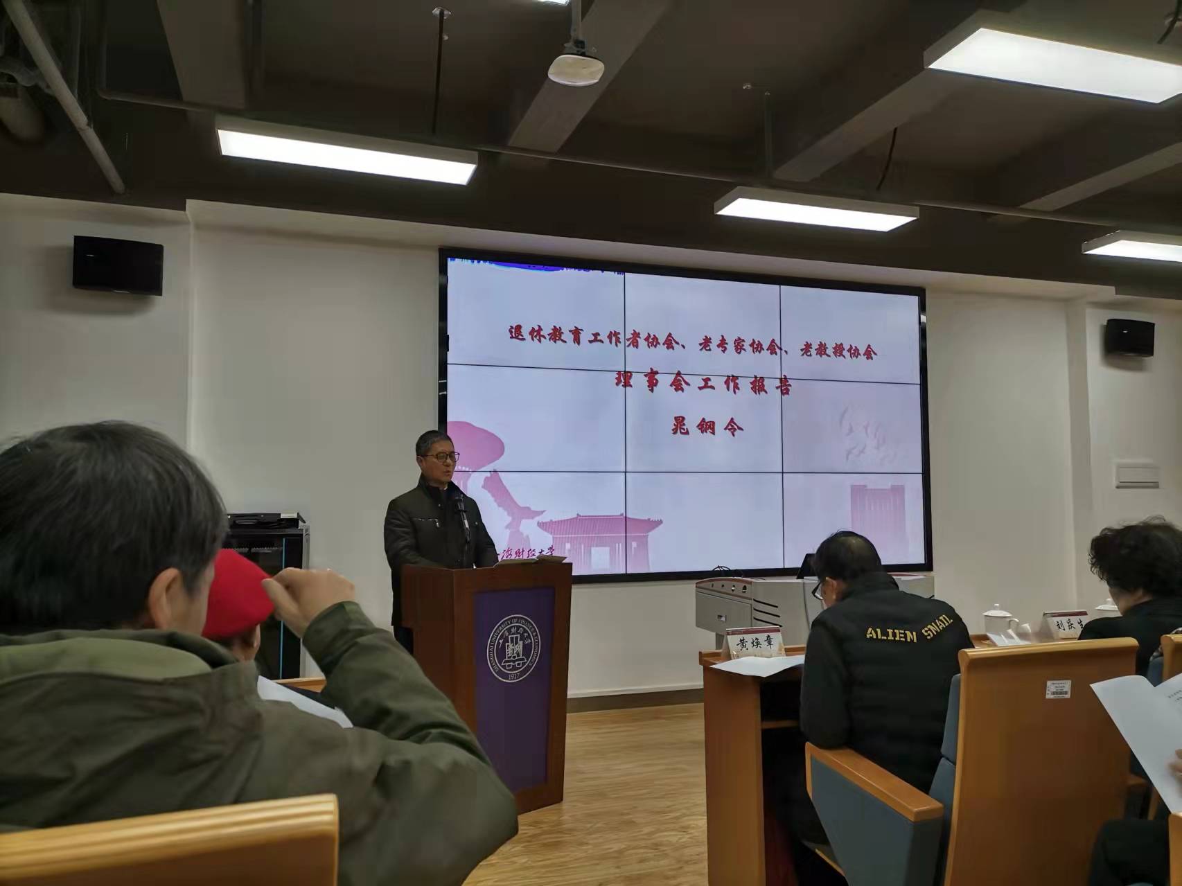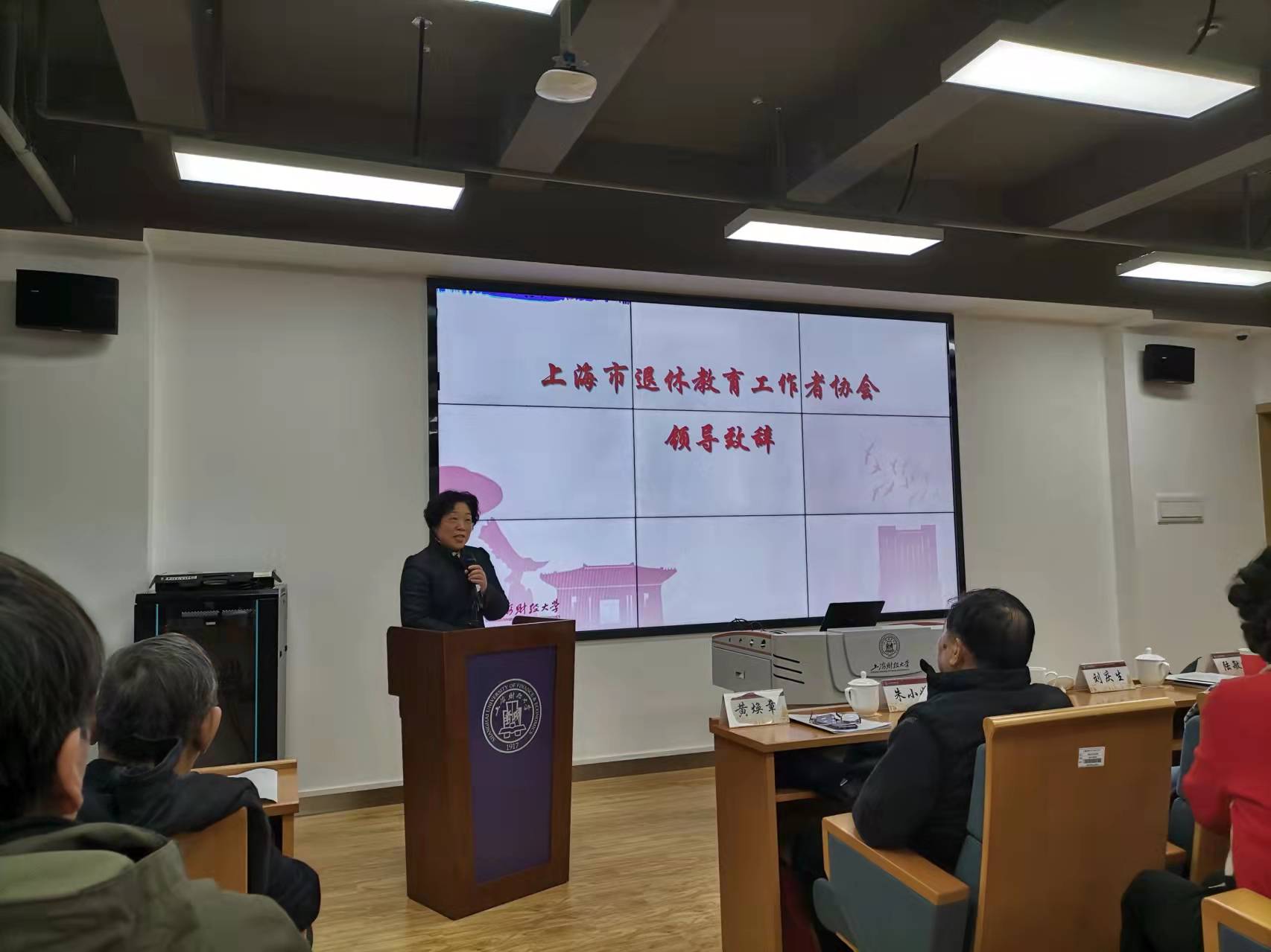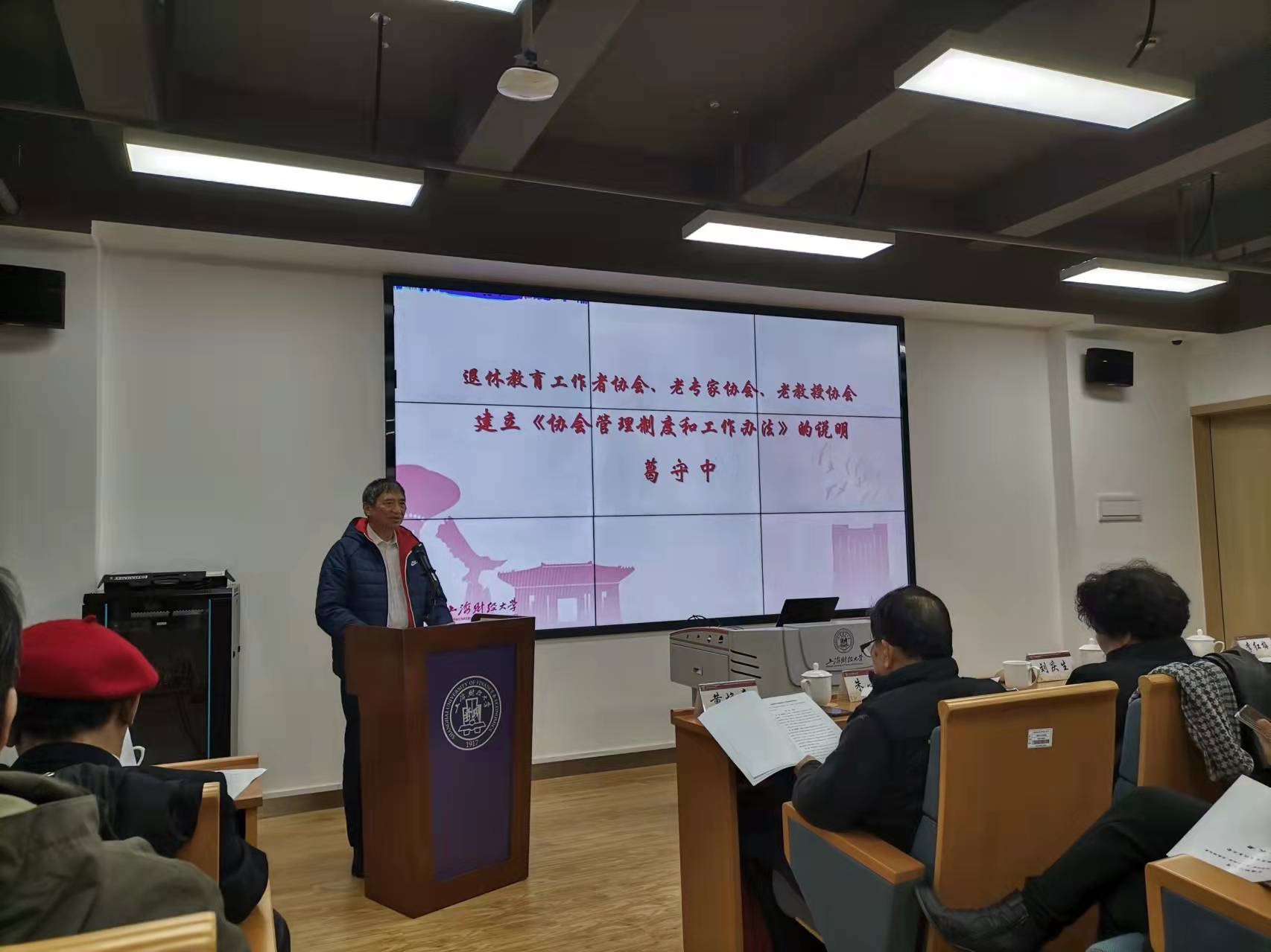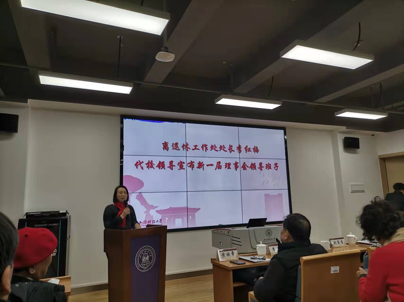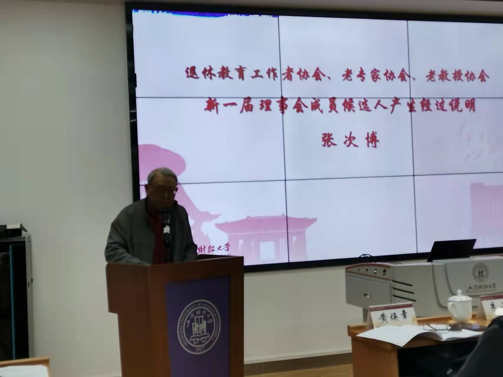 1月5日,在我校国际文化交流学院报告厅,校退休教育工作者协会、老专家协会、老教授协会联合换届大会(三会合一,简称退教联)隆重召开。校党委常委、组织部长刘庆生,上海市退休教育工作者协会会长朱小娟,上海市老教授协会副会长陆敏恂,上海市退(离)休高级专家协会经法委主任黄焕章、副主任徐道荫和委员萧珍珍,校离退休工作处处长李红梅,校退教联全体理事和新一届理事会理事候选人、各分会会员代表、特邀代表和退教联办公室全体人员出席会议。会议由校退教联副会长岳咬兴主持。