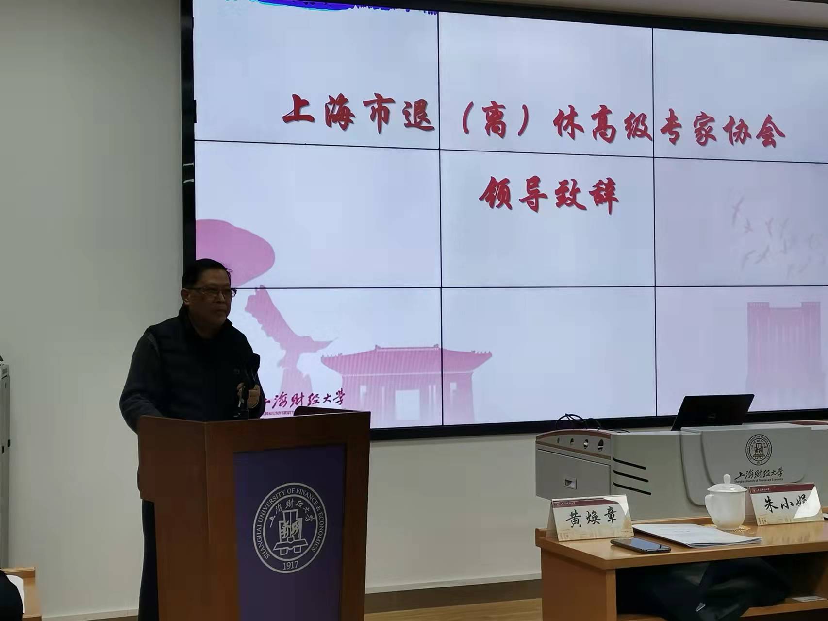 黄焕章代表上海市退(离)休高级专家协会经法委,对换届工作圆满成功表示热烈的祝贺,对新一届领导班子产生表示由衷的高兴,并向新一届领导班子表示热烈的祝贺!他说,上海财经大学老专家协会在校党委的关心和领导下,在市老专家协会和经法委的领导和指导下为上海市退(离)休高级专家协会做了大量工作,无论在开展学习、研讨会、沙龙、讲座等方面做出了卓越贡献,取得了很大成绩。希望上海财大老专家协会,发挥老教授、老专家的专业优势,作出新的贡献!