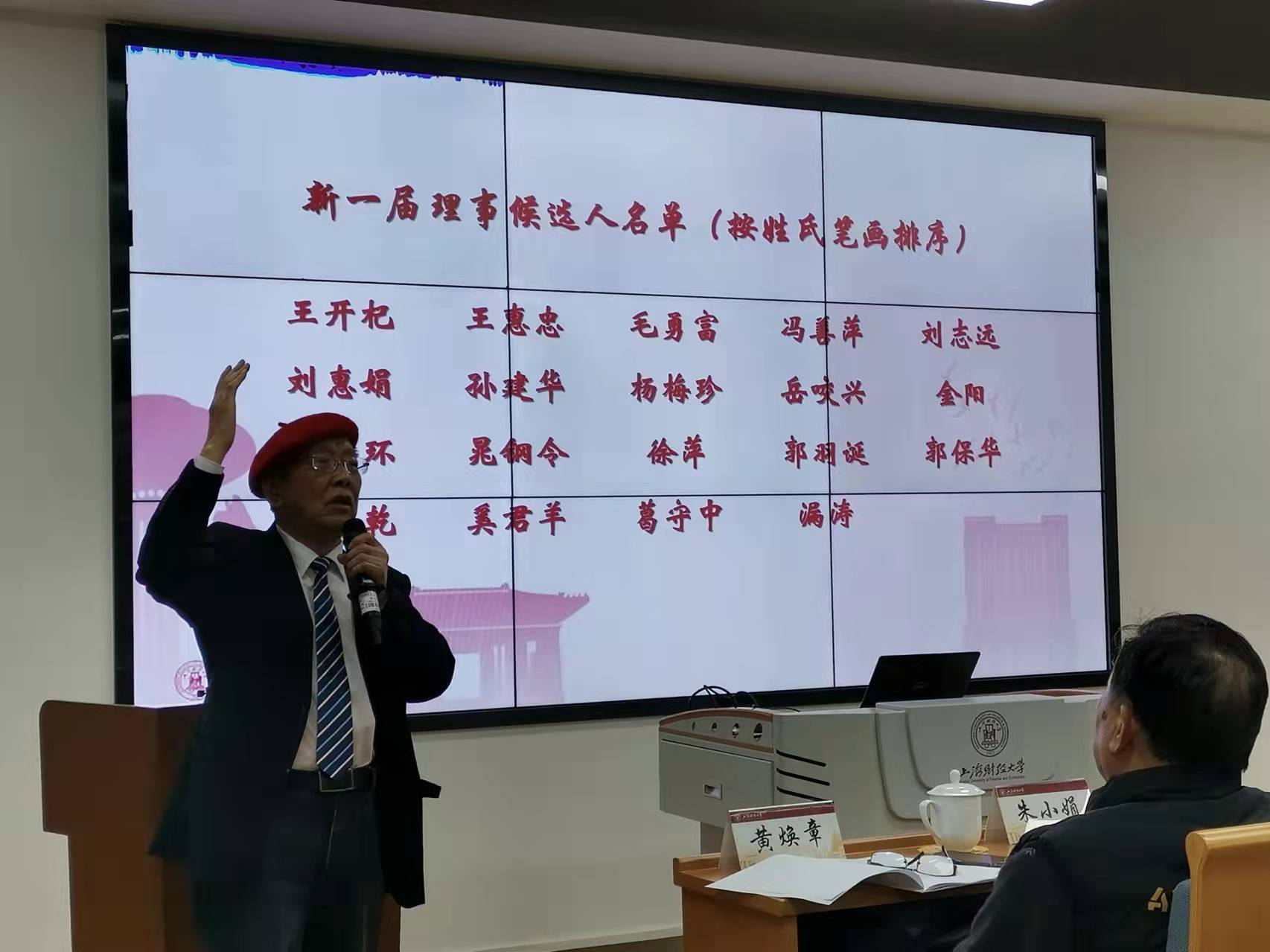 之后,校退教联会长晁钢令作退教联第一届理事会工作报告,与大家分享本届理事会取得的工作成绩和经验。副会长兼秘书长葛守中代表大会筹备组作制定《上海财经大学退教联工作制度和管理办法》的情况说明。副会长张次博代表大会筹备组作关于新一届理事会成员候选人产生经过的说明,宣布理事候选人名单。会议审议通过了《坚定政治站位 确立服务意识 活跃退休生活——上海财经大学退教联第一届理事会工作报告》《上海财经大学退教联工作制度和管理办法》以及19名新一届理事会成员名单。