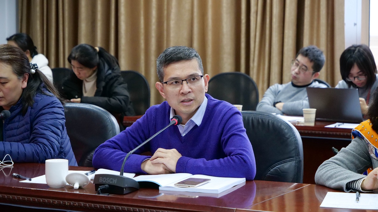 在交流互动阶段,教务处副处长江晓东作交流发言。他高度评价了专项监督在推动学校课程思政落实中的重要作用,感谢监督组为推动学校课程思政落实落细所作的努力。他围绕课程思政内涵和外延、专业教育和思政教育“两张皮”现象以及思政元素核心指标设置等主题作交流。