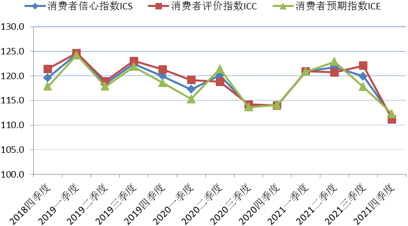 图1 2018年第四季度至2021年第四季度上海市消费者信心指数及其构成
