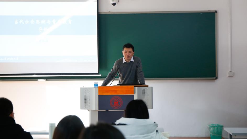 8:55,四教的104教室,曹东勃老师开始讲授的《当代社会思潮与青年教育导论》课程。2月20日晚,北京冬奥会正式闭幕,曹老师从冬奥会闭幕式谈起,他表示,冬奥会的青年志愿者们所展现的是我国当代青年的磅礴力量。处在“两个大变局”的背景下,如何调动青年的积极性,做好青年的思想政治工作,是思想政治教育专业的同学需要思考的问题。紧接着。曹老师从当代青年到底在想什么;当代社会思潮有多大的影响;当代青年所具备的开放性、互动性、解构性等特点来进行阐述。课上,曹老师用同学们熟悉的如“佛系”、“躺平”等网络流行词让同学们进一步理解社会思潮实际的呈现形式,同时也用贴近同学们的B站周年演讲引发同学们的思考。
